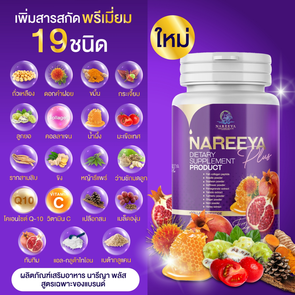 ?นารีญาพลัส Nareeya Plus สมุนไพรนารีญา ? เห็นผลไวกว่าเดิม นวัตรกรรมใหม่ด้วยสารสกัด เกรดพรีเมี่ยม 19 ชนิด สูตรเฉพาะแบรนด์ ??????? ✅ปลอดภัยผ่าน อย.42-2-00650-5-0010 ? 1 กระปุก : บรรจุ 60 เม็ด ? ✔️ ช่วยดูแลระบบฮอร์โมน ร่างกาย ✔️ ช่วยดูแลน้องสาว ลดปั