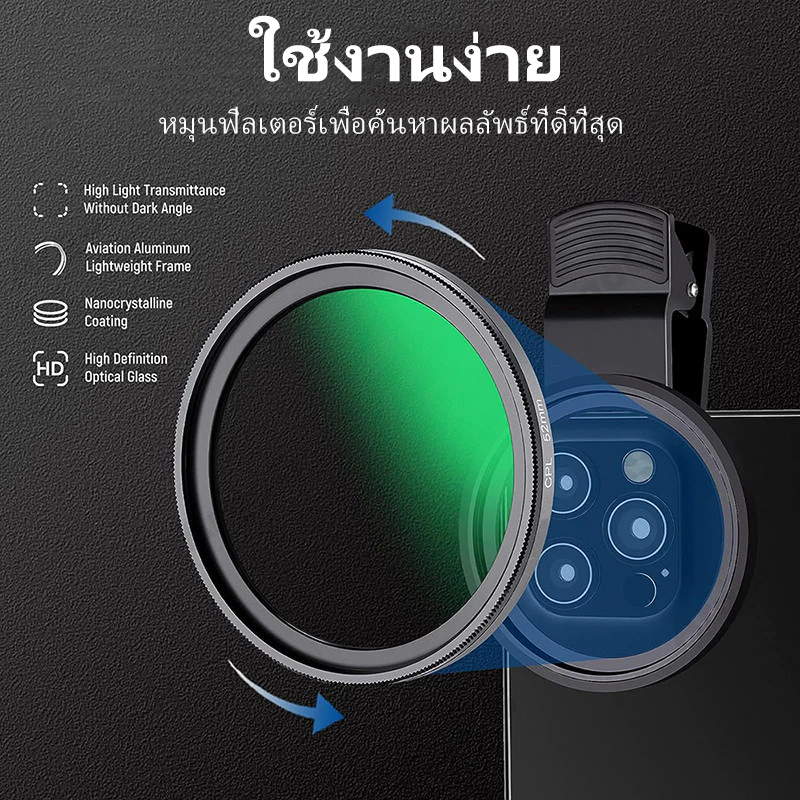 52mm CPL Filter เลนส์แก้ว HD เลนส์ cpl มือถือ เพิ่มความอิ่มตัวของสีและความคมชัด แบบมืออาชีพ สําหรับลดแสงสะท้อน