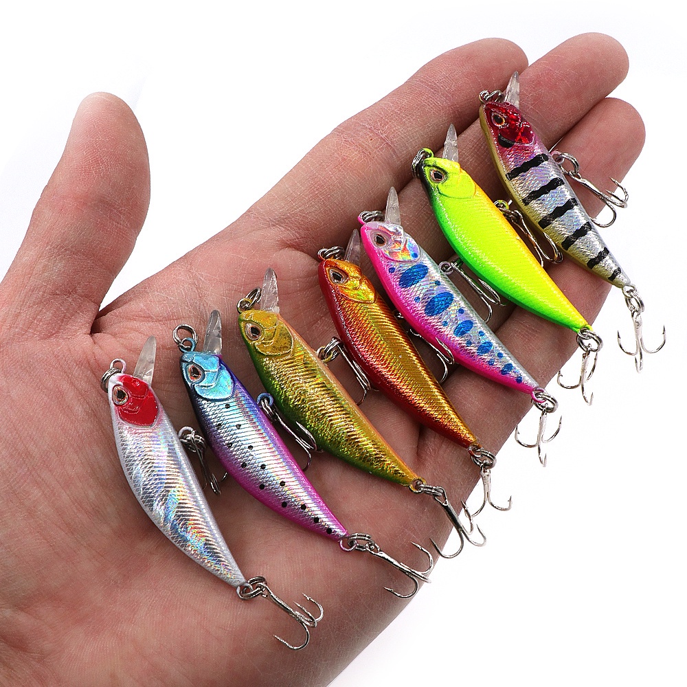 เหยื่อตกปลาพลาสติก 3D 34 สี 5 กรัม 5 ซม. พร้อมตะขอ 2 ชิ้น