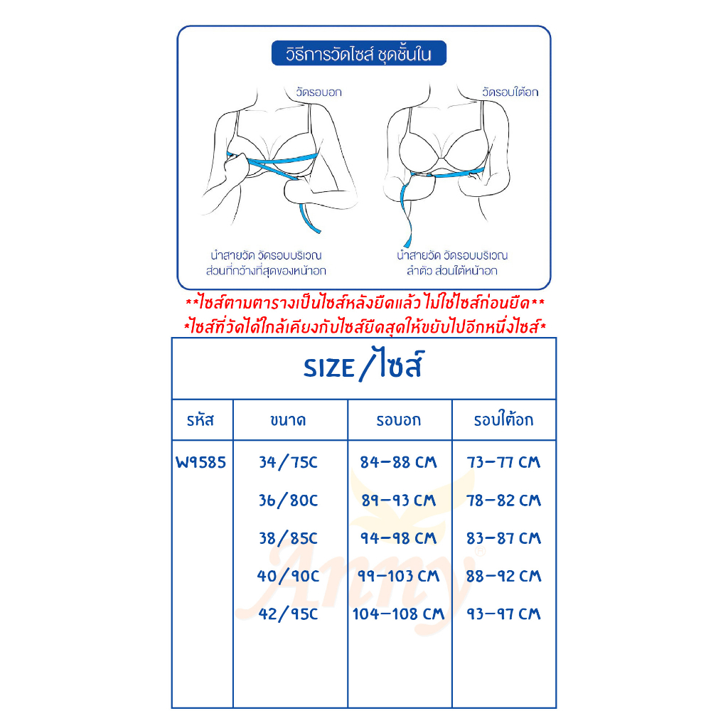 ชุดชั้นในAnny เสื้อใน รุ่นW9585 ทรงใหญ่ คัพC ใส่เต็มทรง มีโครง ฟองน้ำบาง4mm ยกกระชับอก เก็บข้างดี ทรงสวยดูดี