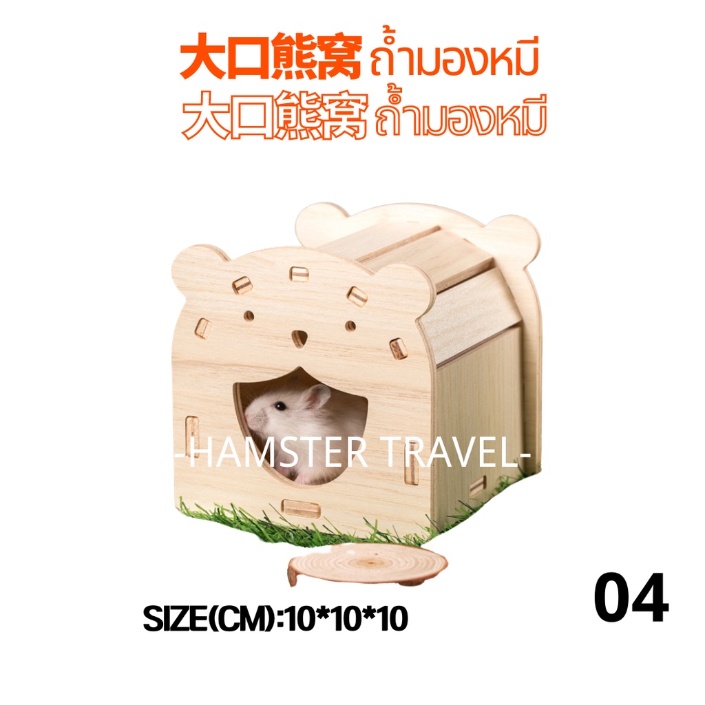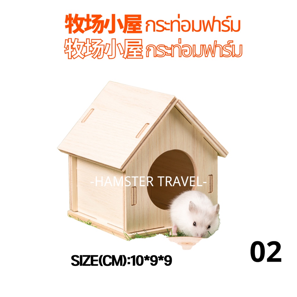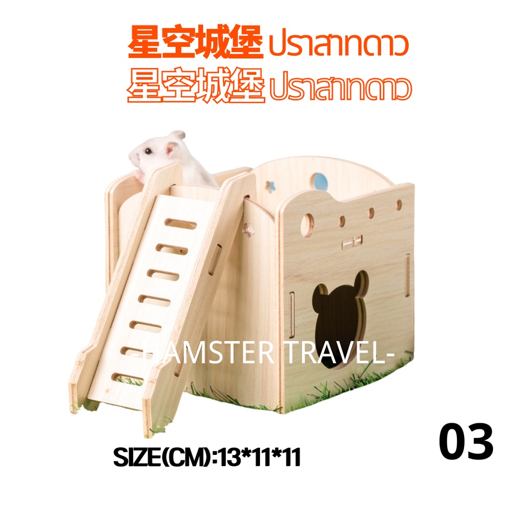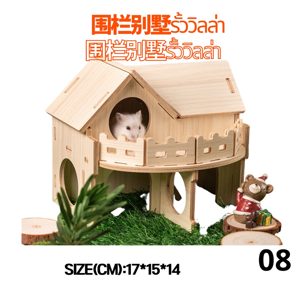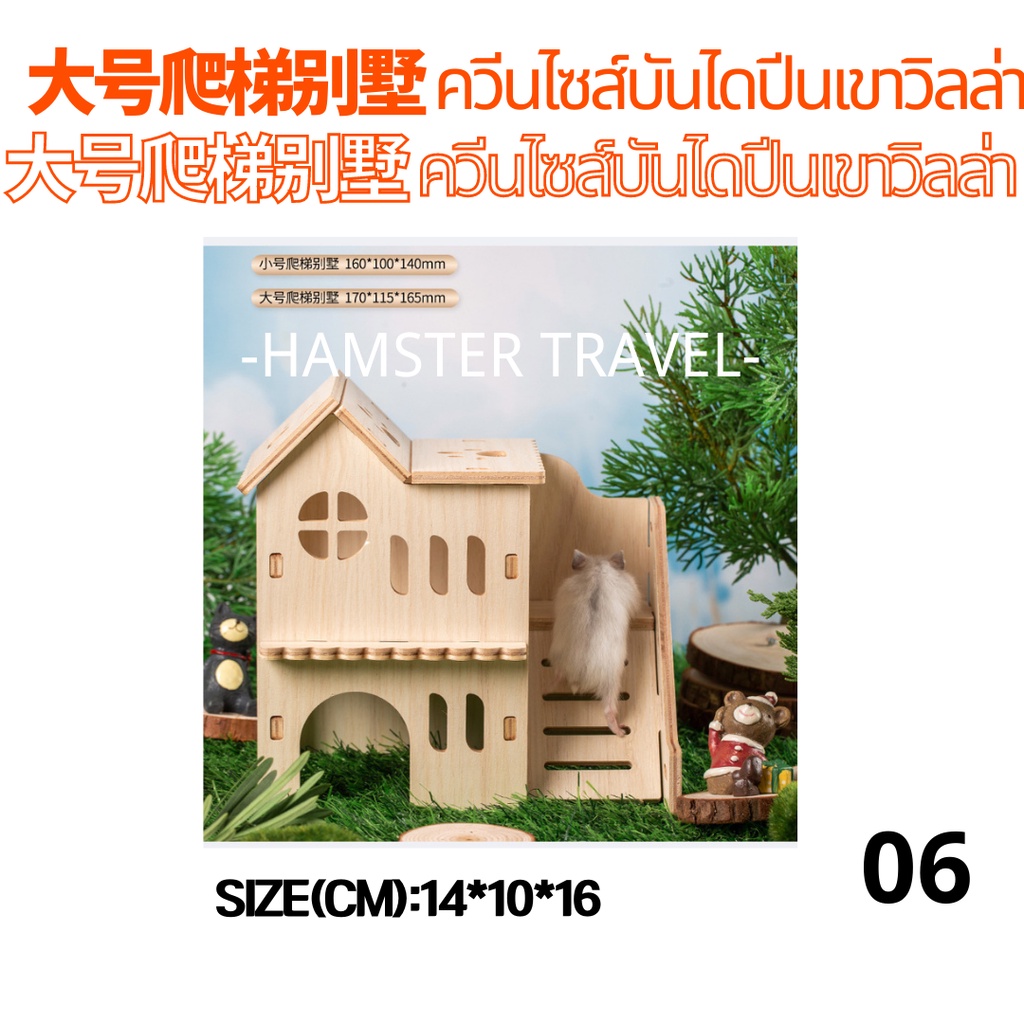 hamster travel บ้านไม้ บ้าน2ชั้น สะพานไม้ไม้ สำหรับหนูแฮมสเตอร์yms