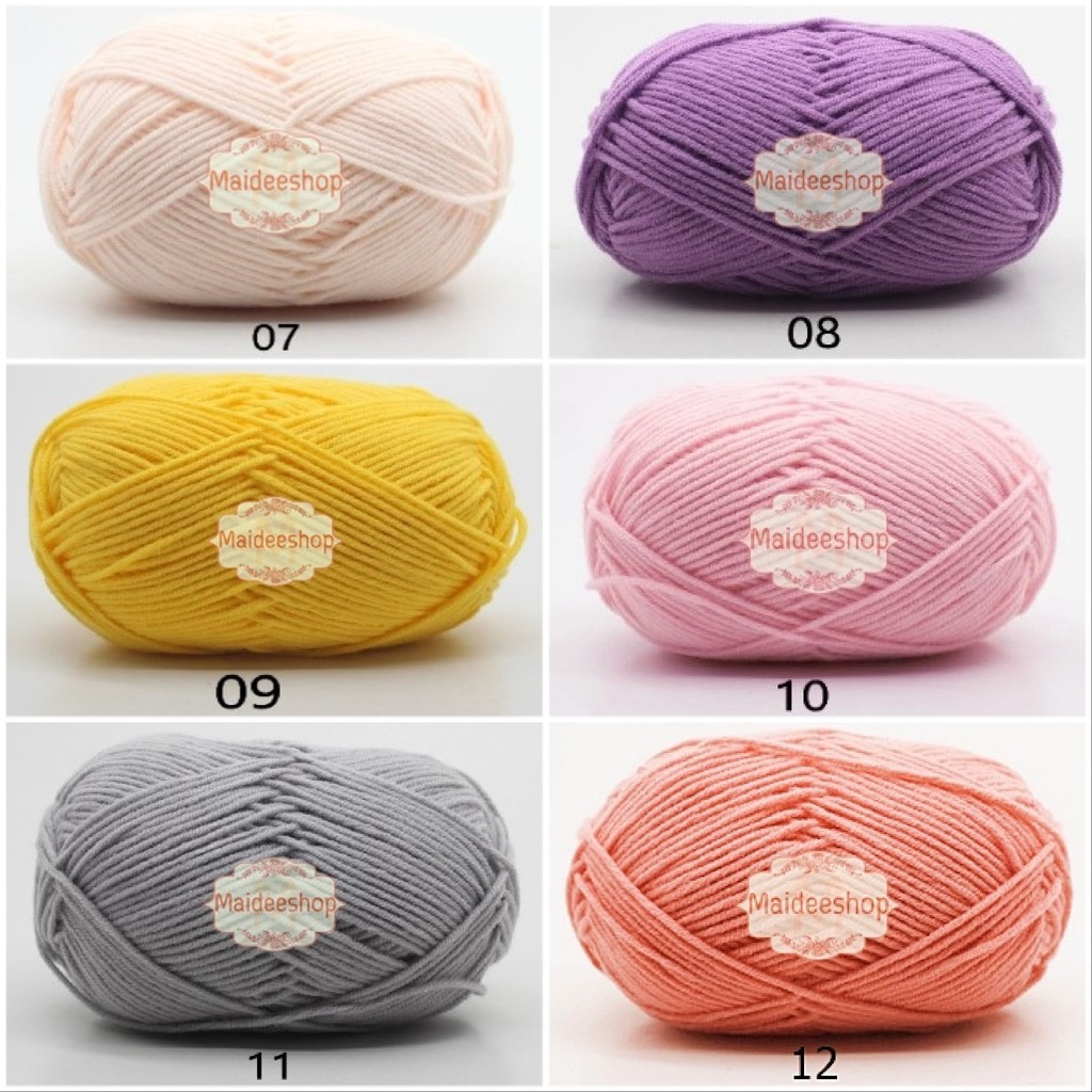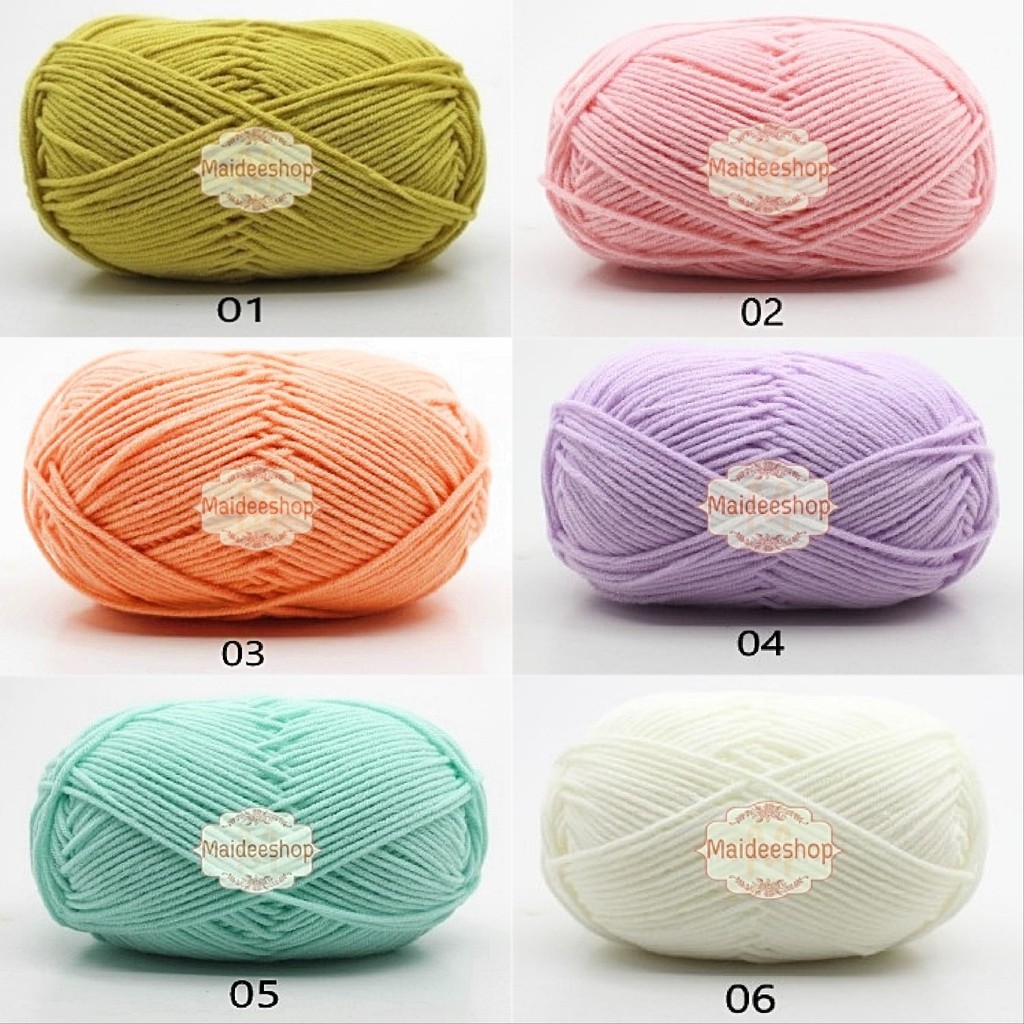 ไหมพรมคอตตอนนม 4Plyแบบนิ่ม นุ่มละมุน 50กรัม เบอร์1-20 ?มีเก็บเงินปลายทางค่ะ