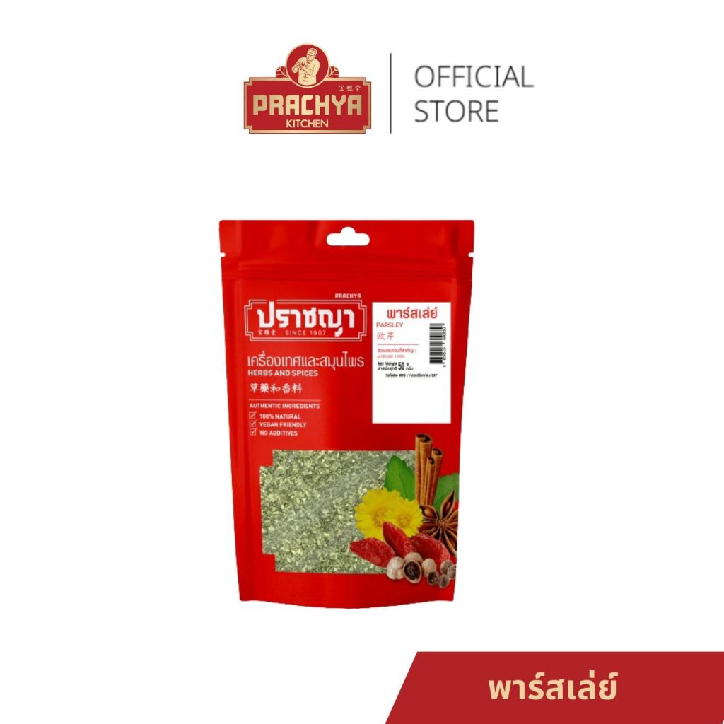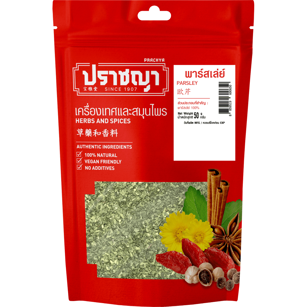 ใบพาร์สเล่ย์อบแห้ง Parsley 50 กรัม เครื่องเทศ ตรา ปราชญา