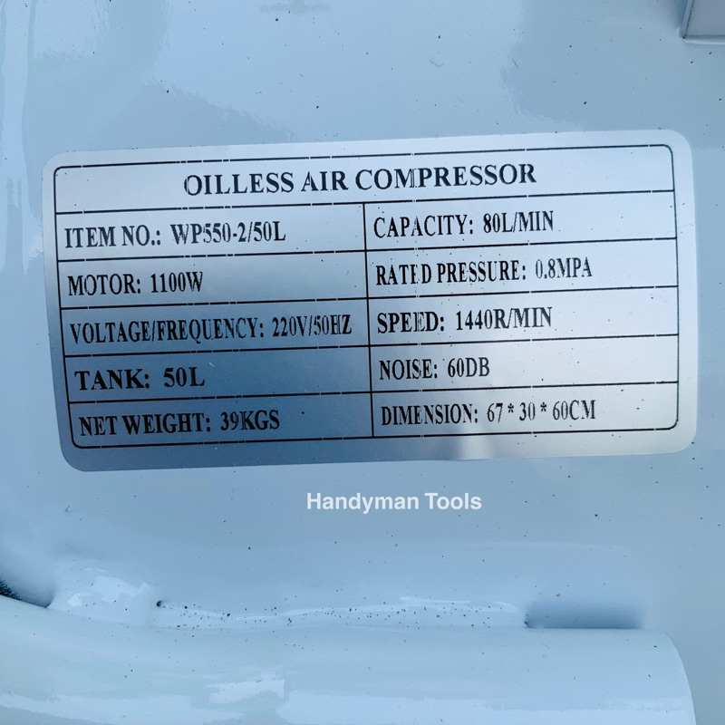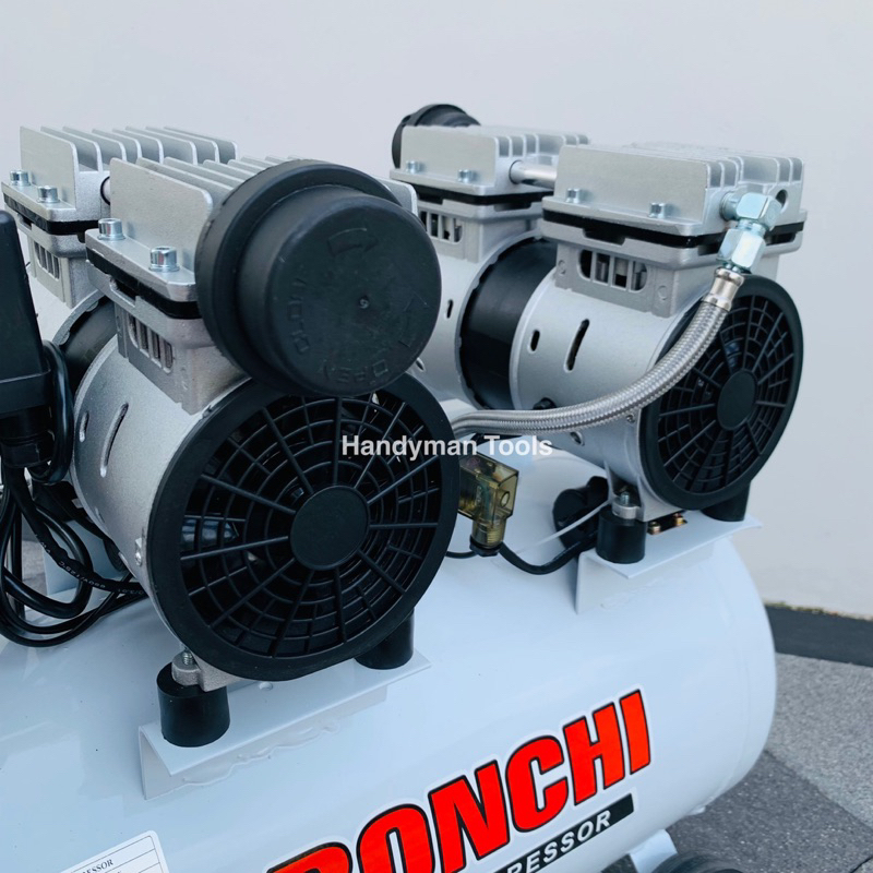 BONCHI ปั๊มลม 50 ลิตร แบรนด์ดัง เสียงเงียบ ปั๊มลมโรตารี่ ปั๊มลมออยฟรี รุ่น รุ่น WP550-2/50 + อุปกรณ์ 6 อย่าง