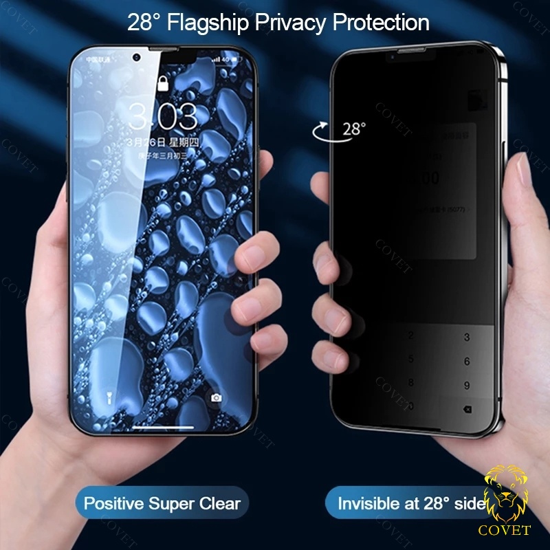 COVET 1- 2 ชิ้น ติดตั้งความเป็นส่วนตัวได้ง่าย ฟิล์มกระจกนิรภัยกันรอยหน้าจอ ป้องกันการแอบมอง สําหรับ IPhone 11 12 13 14 15 16 Pro Max Plus XS Max X XR