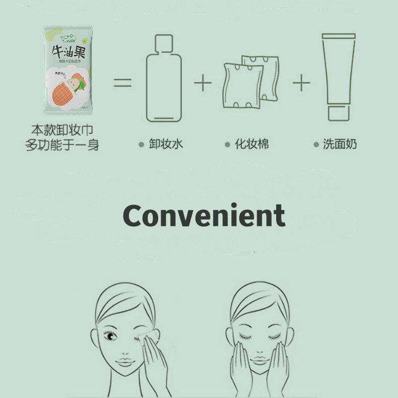 ผ้าเช็ดทำความสะอาดเครื่องสำอางอะโวคาโด ไร้สารเคมี อ่อนโยนต่อเด็กและสตรี พกพาสะดวก และทำความสะอาดง่าย