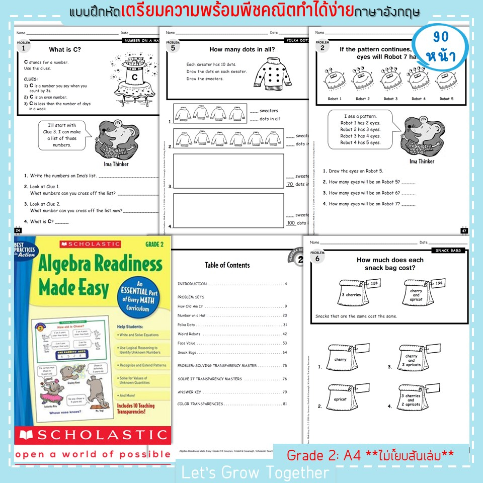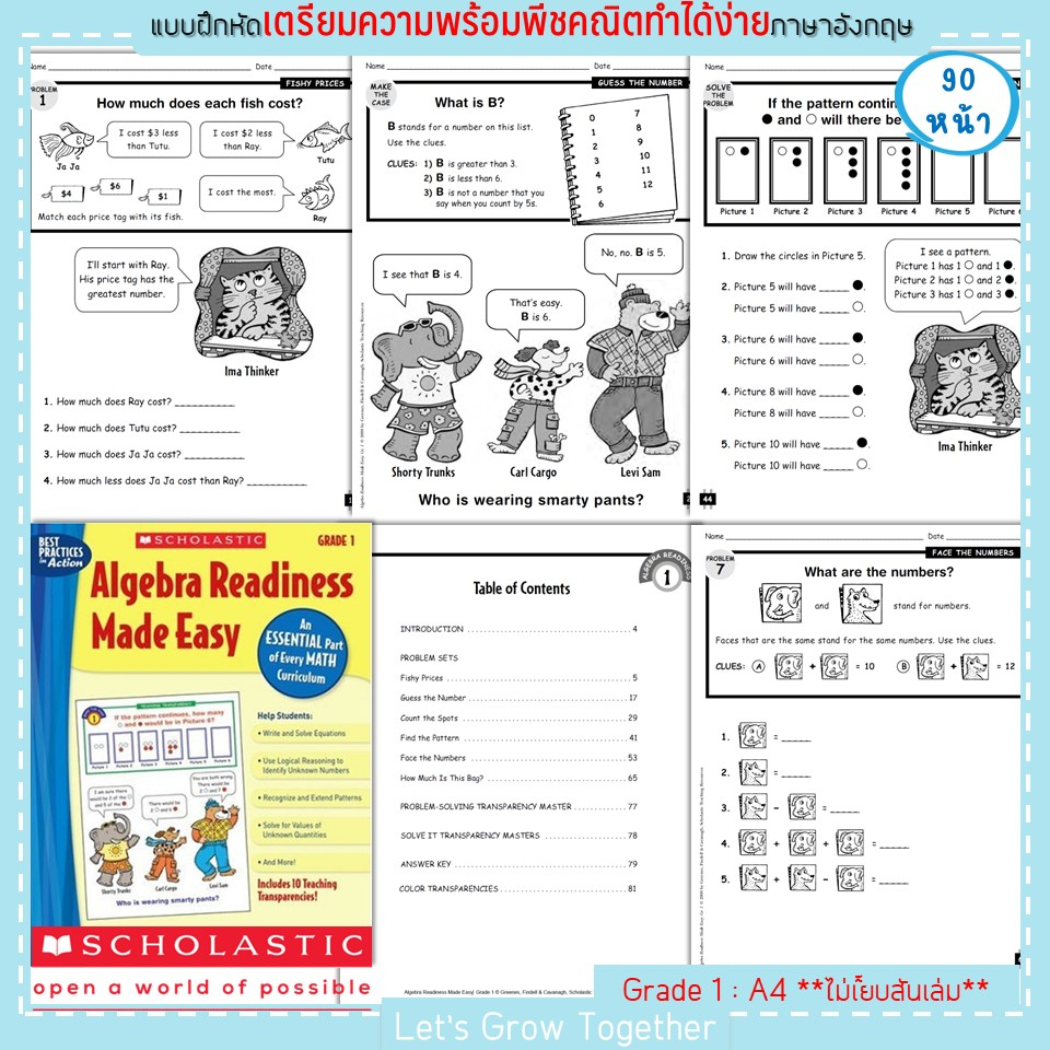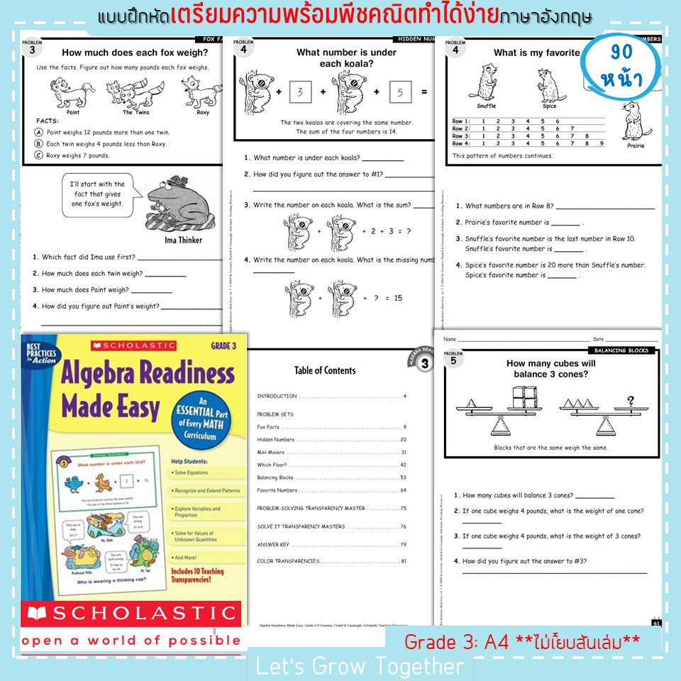 Scholastic แบบเรียนพีชคริตเพื่อเตรียมความพร้อมสำหรับการเรียนคณิตศาสตร์ ระดับประถม Algebra Readiness Made Easy 90 หน้า