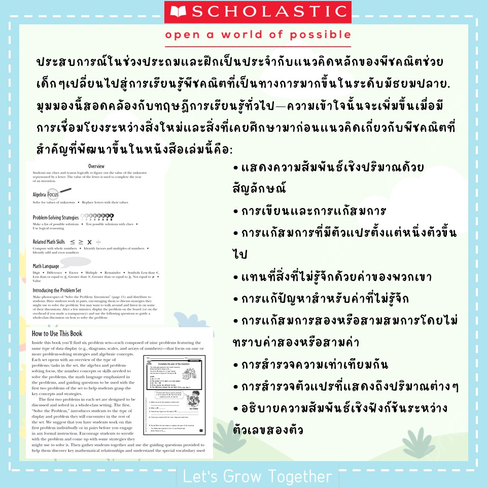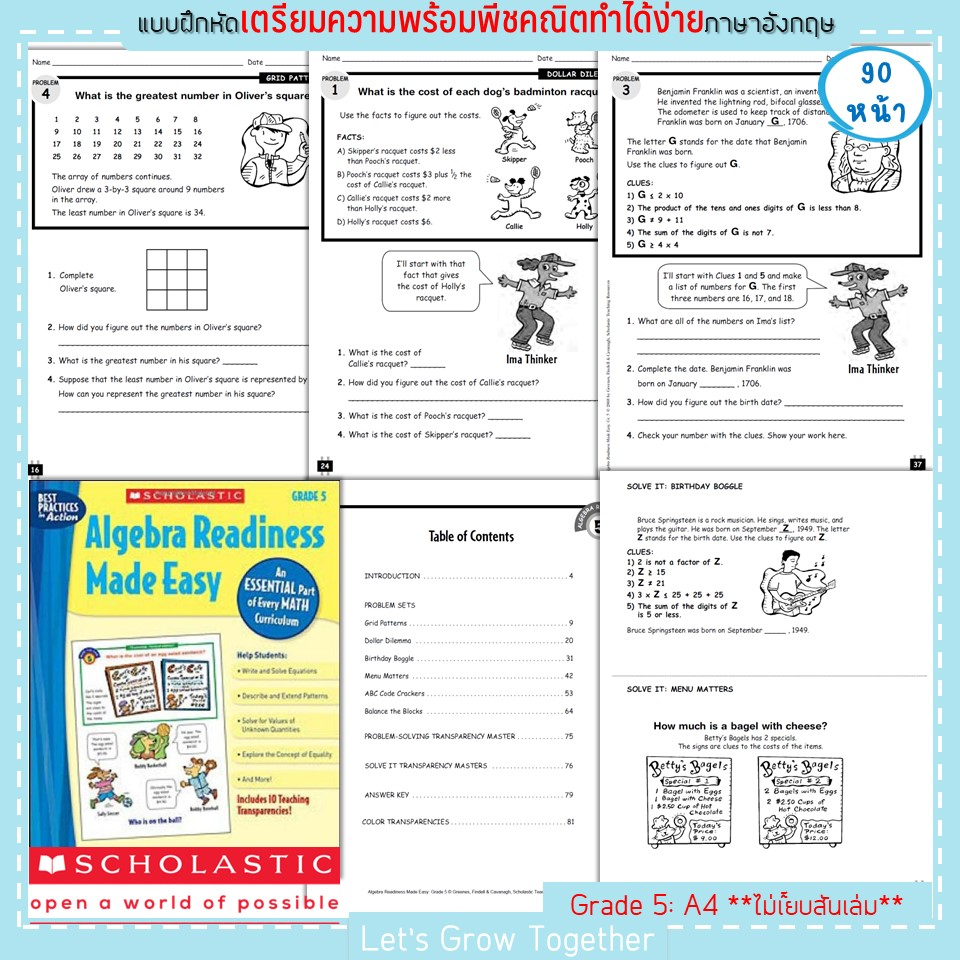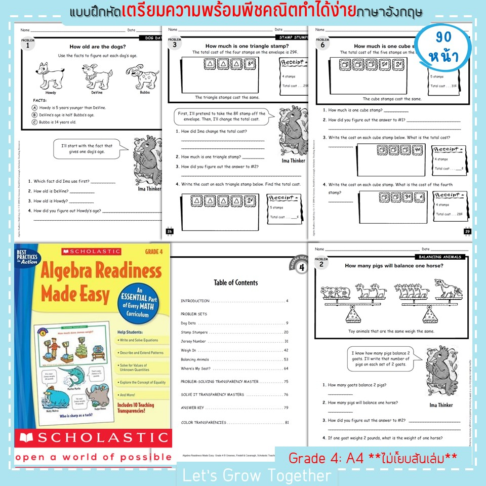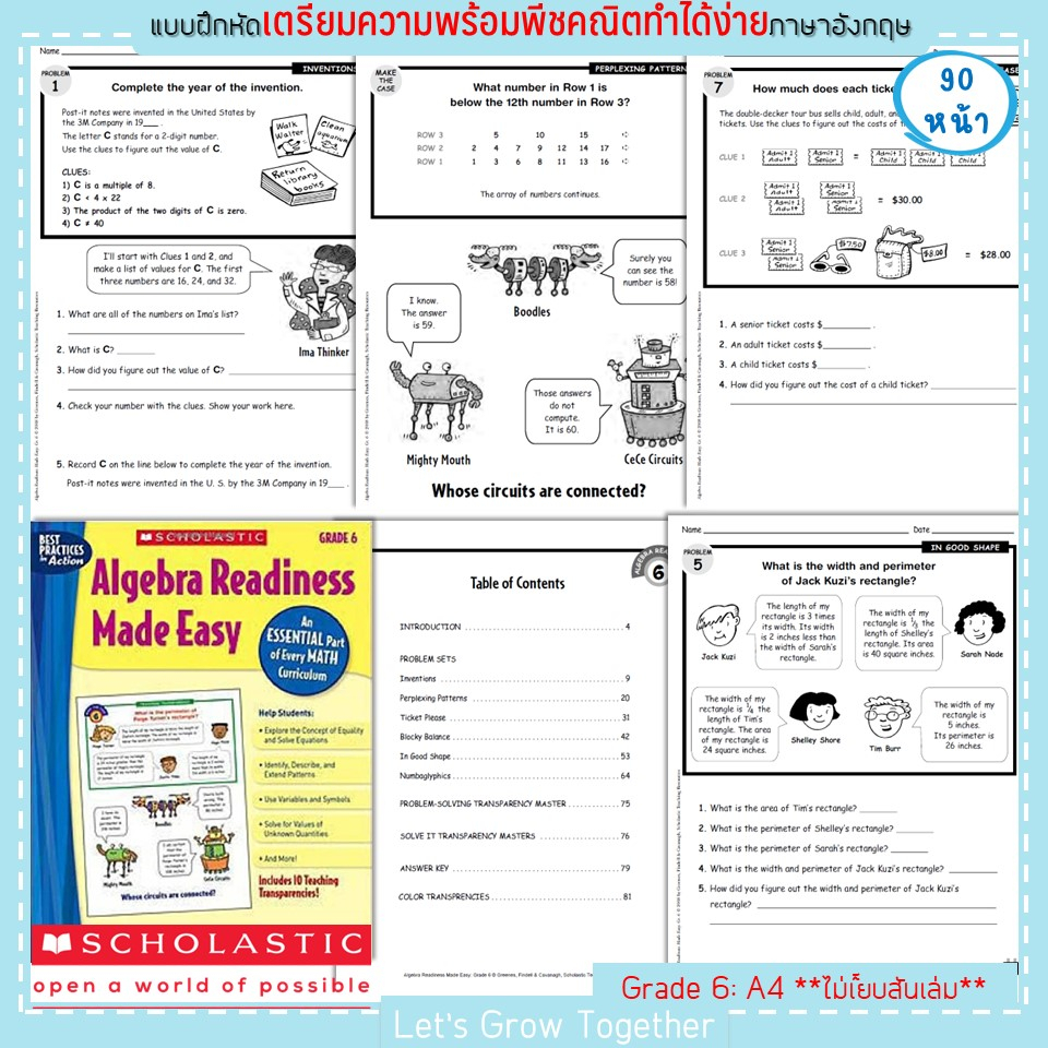 Scholastic แบบเรียนพีชคริตเพื่อเตรียมความพร้อมสำหรับการเรียนคณิตศาสตร์ ระดับประถม Algebra Readiness Made Easy 90 หน้า