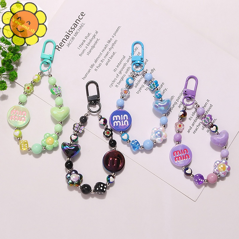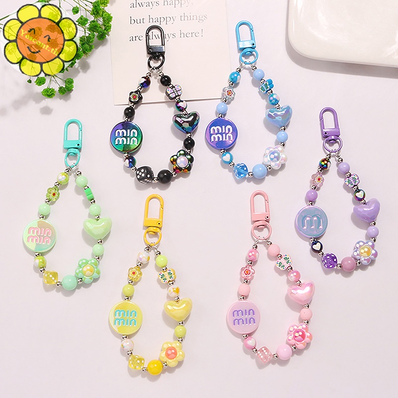 Yescont สายคล้องโทรศัพท์มือถือ จี้ลูกปัด ลายดอกไม้ ป้องกันการสูญหาย แฮนด์เมด