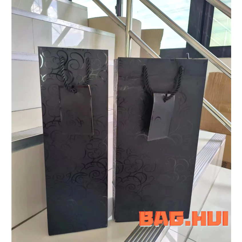 ถุงกระดาษหนา ถุงทรงสูง ถุงใส่ขวดไวน์ มีป้ายห้อย พร้อมส่ง