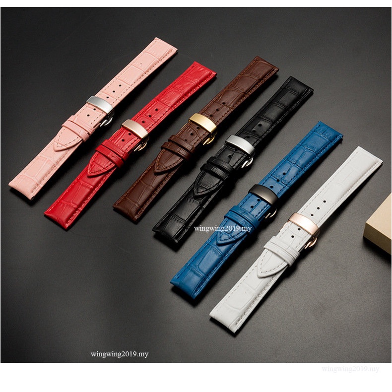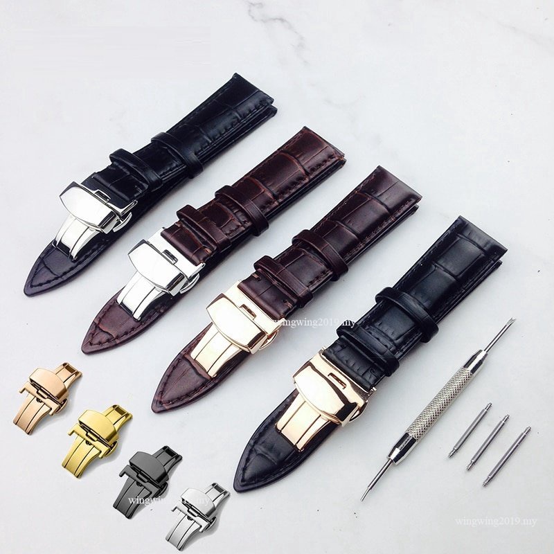 สายนาฬิกาข้อมือ หนังวัวแท้ 18 มม. 20 มม. 22 มม. 24 มม. พร้อมบักเกิลผีเสื้อ แบบเปลี่ยน สําหรับ Galaxy Watch 46 มม. Gear S3 22 ม. Huawei Watch 3 3 pro