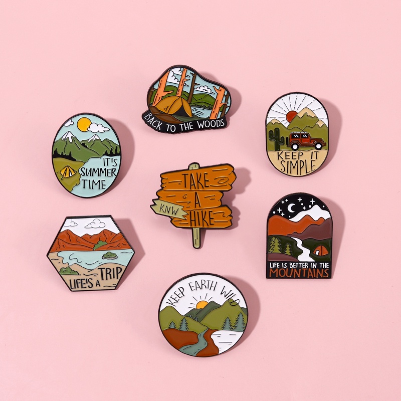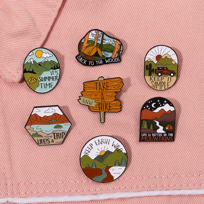 เดินป่าตั้งแคมป์กลางแจ้งเคลือบปกขาเข็มกลัดเดินทางเข็มกลัดตราทิวทัศน์เครื่องประดับของขวัญสําหรับเพื่อน