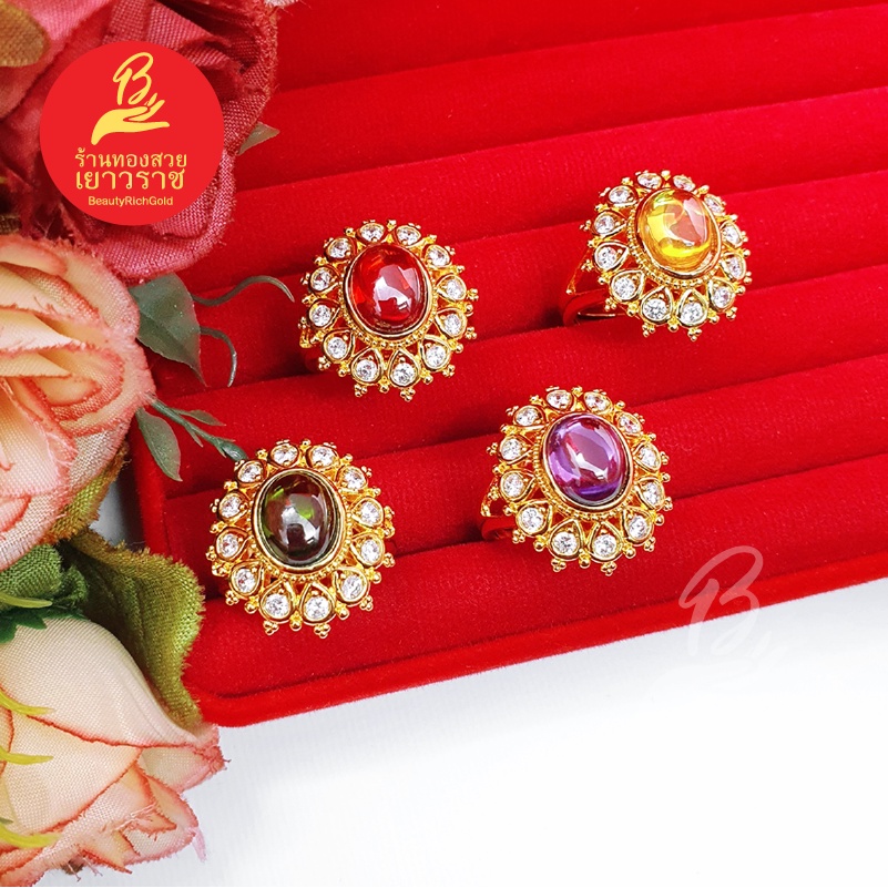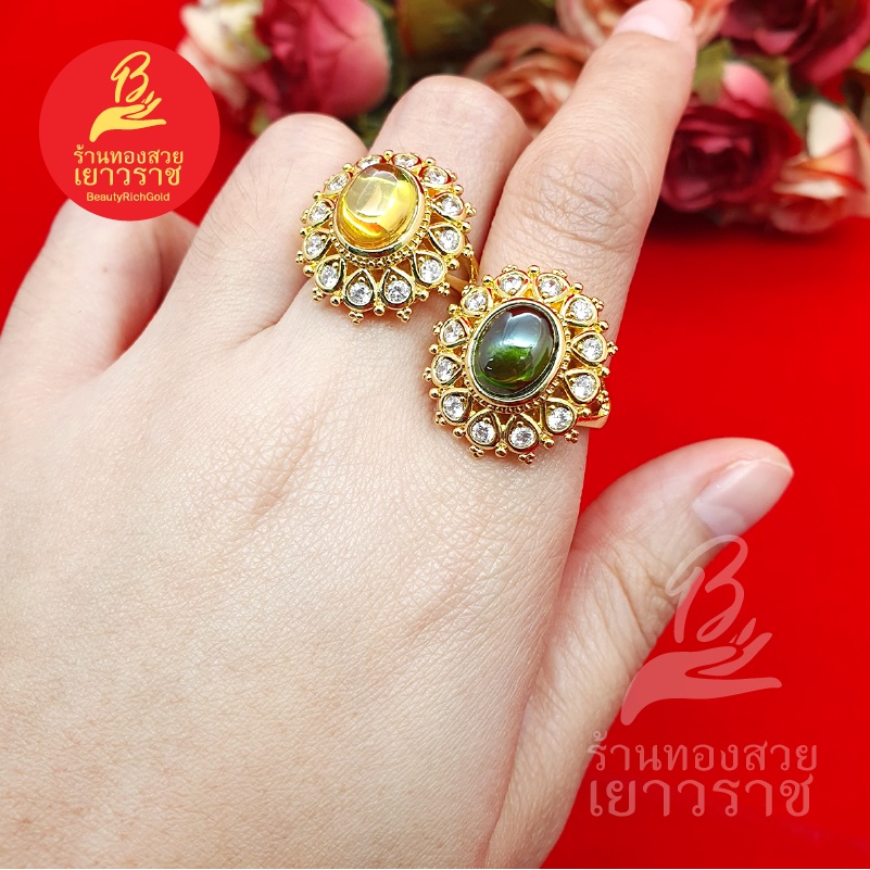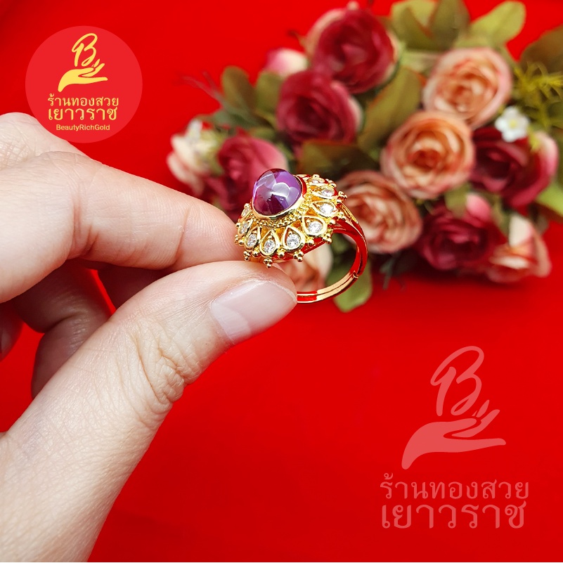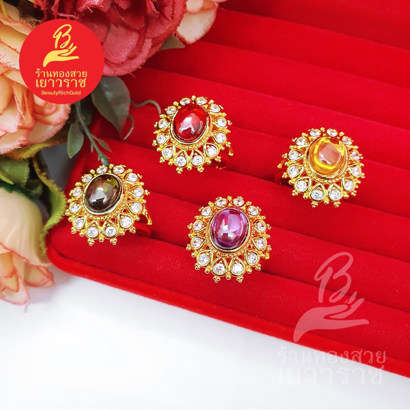 แหวนทองฝังพลอย ฟรีไซส์ ดีไซส์เรียบหรู ใส่ได้ทุกโอกาส ใส่เสริมบารมี ใส่อาบน้ำได้ งานสวย พร้อมส่ง