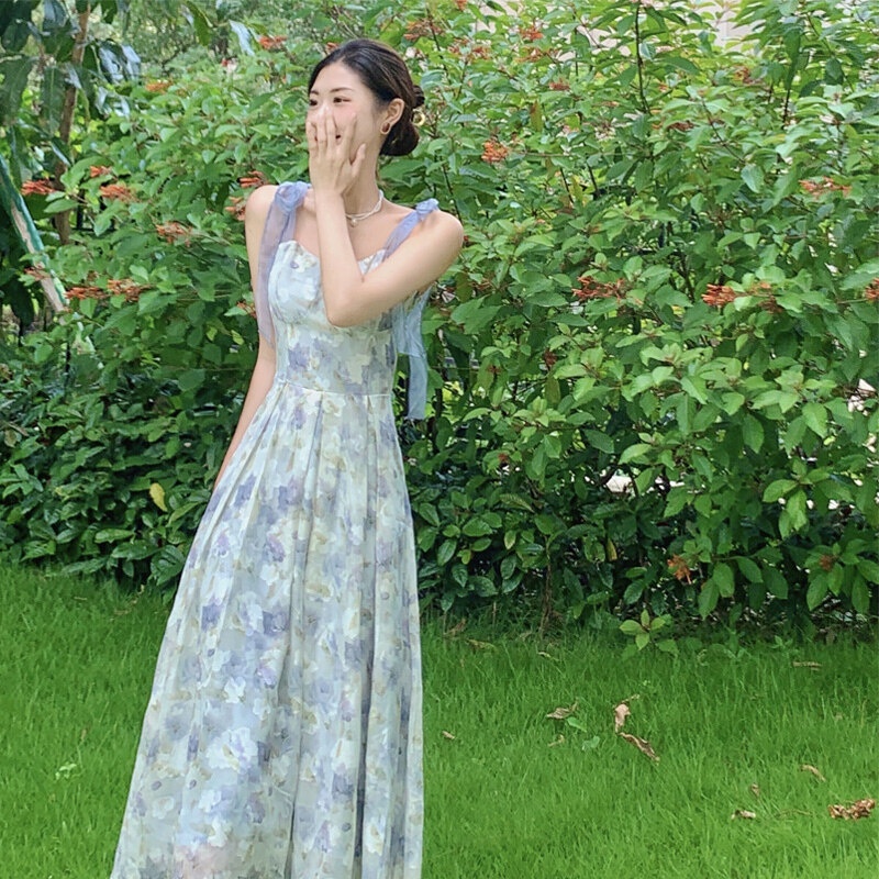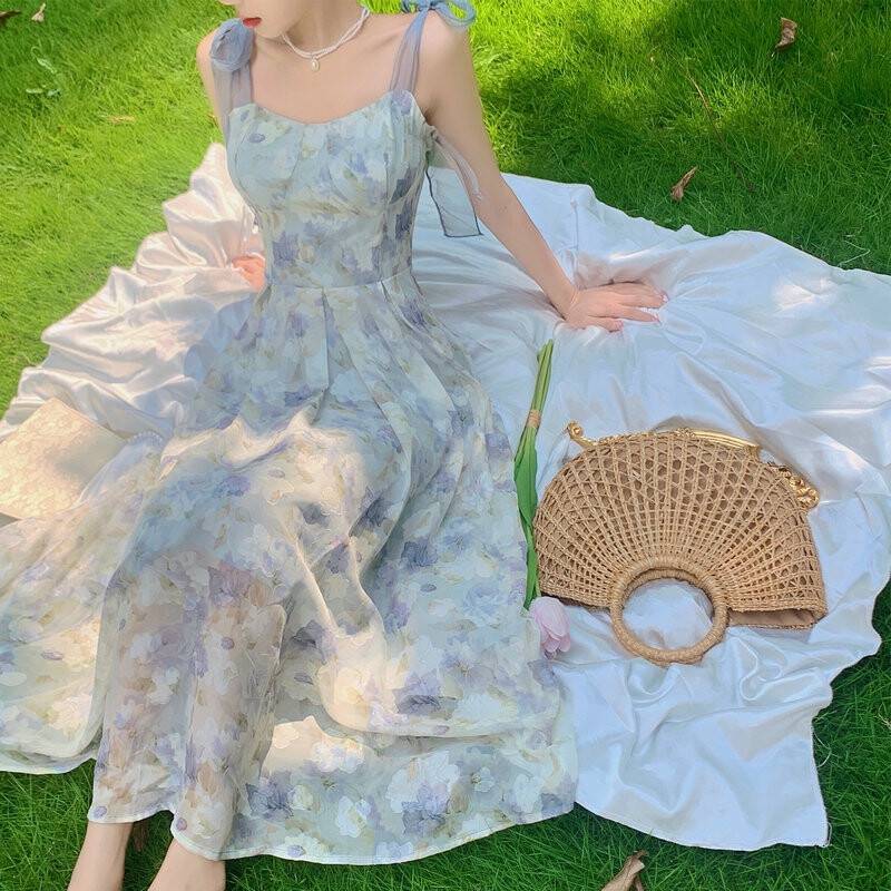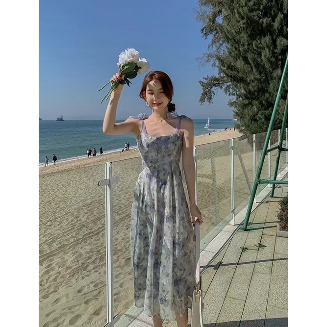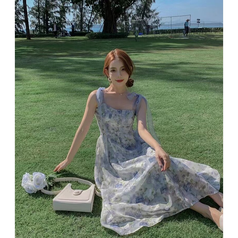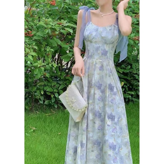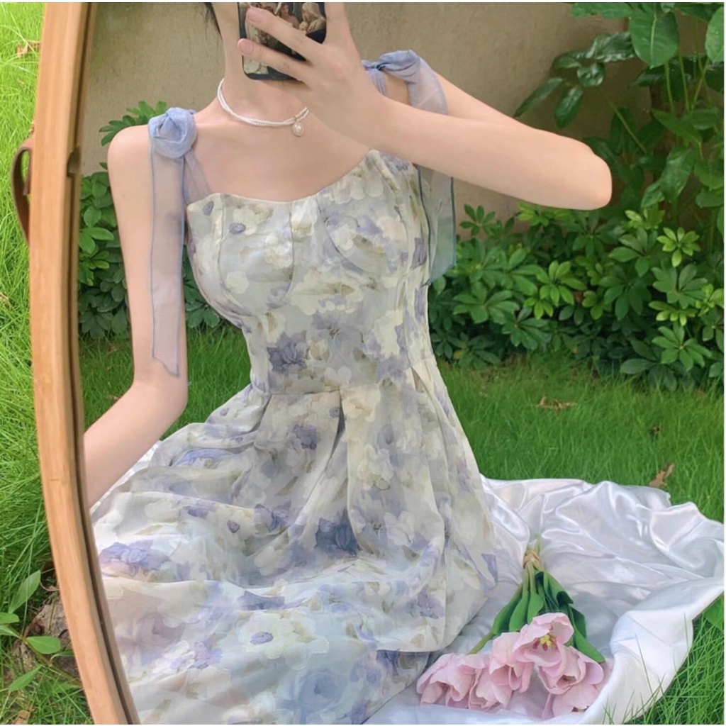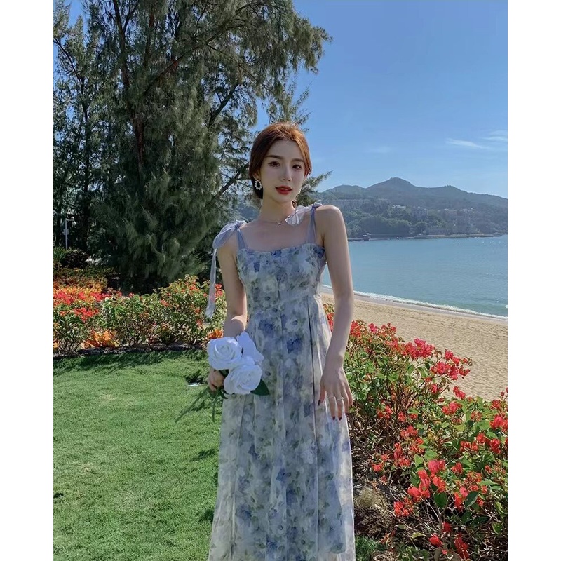 Hotgirl พร้อมส่งจากกทม ✨ ชุดเดรสผู้หญิง ชุดเดรสลายดอกไม้ฝรั่งเศส เหมาะสำหรับการท่องเที่ยวในวันหยุด
