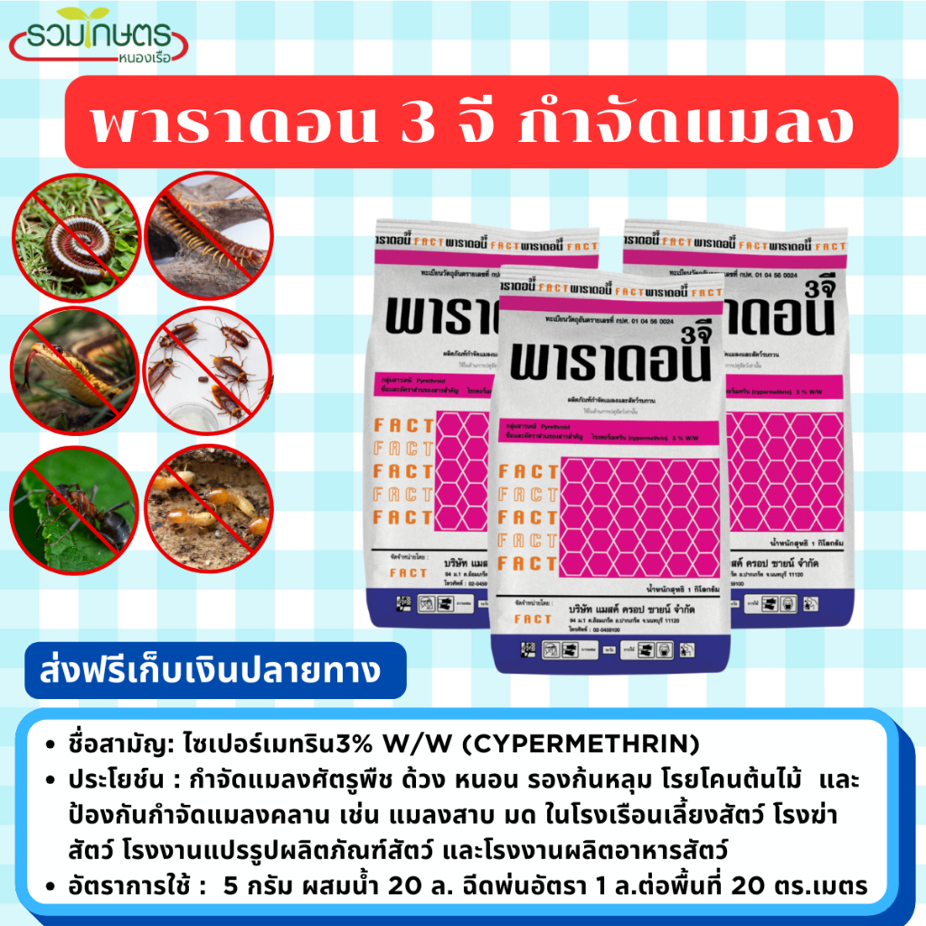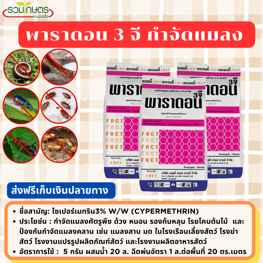 ผงโรยป้องกันแมลง พาราดอน 3 จี ขนาด 1 กก.