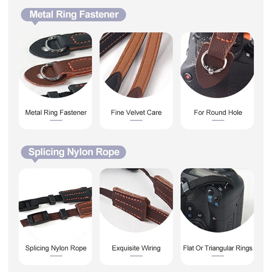 สายคล้องกล้องแฮนด์เมดหนัง PU สายคล้องมือกล้องดิจิตอล SLR DSLR Canon Sony LUMIX Yashica Nikon