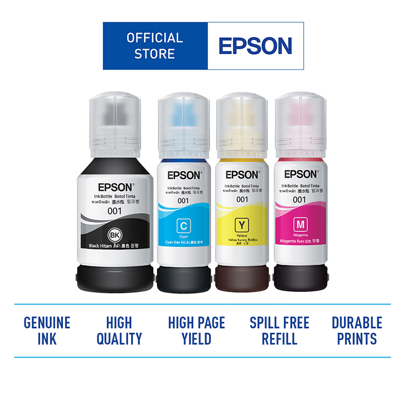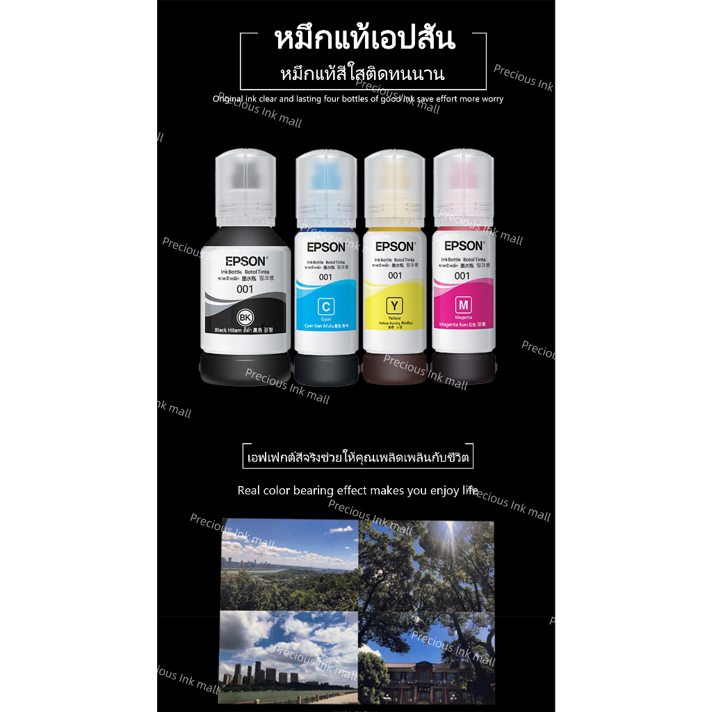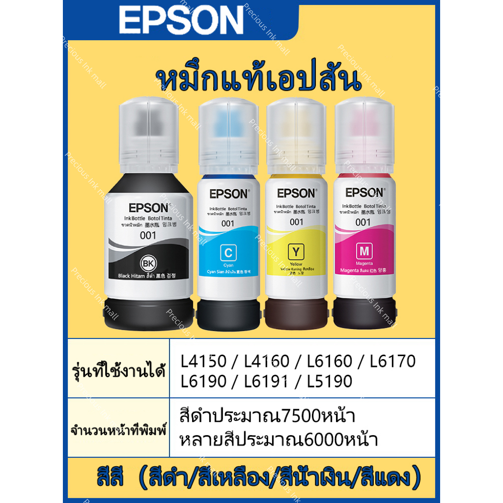 หมึกเติมแท้ EPSON-001 BK/C/M/Y (เซท 4 สี) หมึกเติมแท้100% Epson 001 for L4150 / L4160 / L6160 / L6170 / L6190