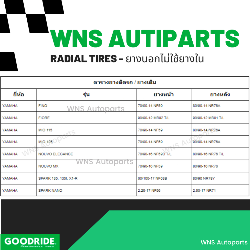 - ประเภทสินค้า : ยางนอกรถจักรยานยนต์แบบไม่ใช้ยางใน (Tubeless T/L)