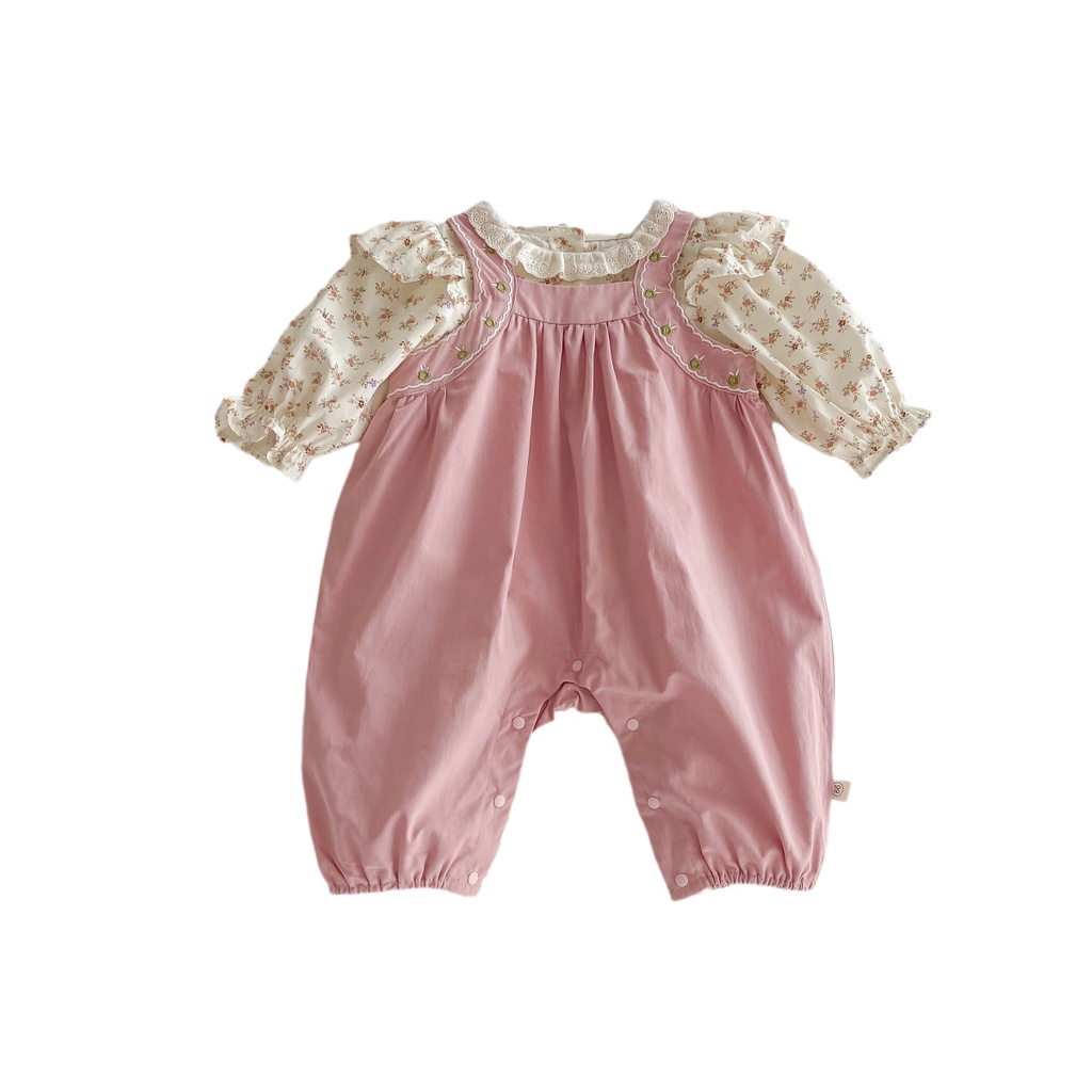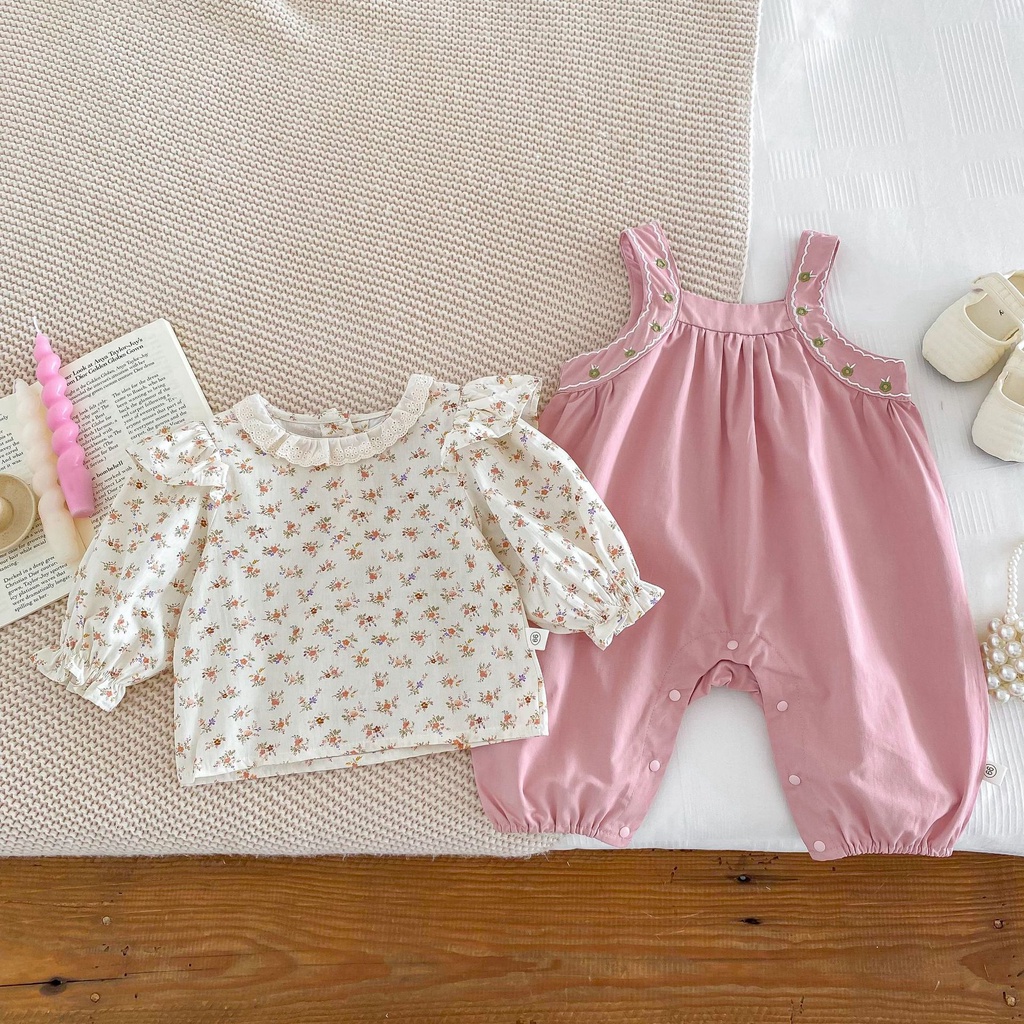 ชุดจั๊มสูท เสื้อยืด ลายดอกไม้ สีชมพู สองชิ้น สําหรับเด็กผู้หญิง อายุ 0-24 เดือน