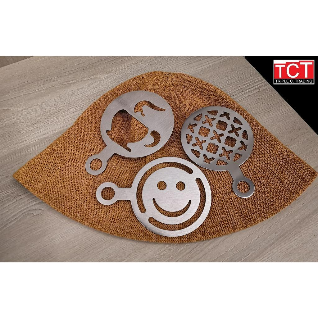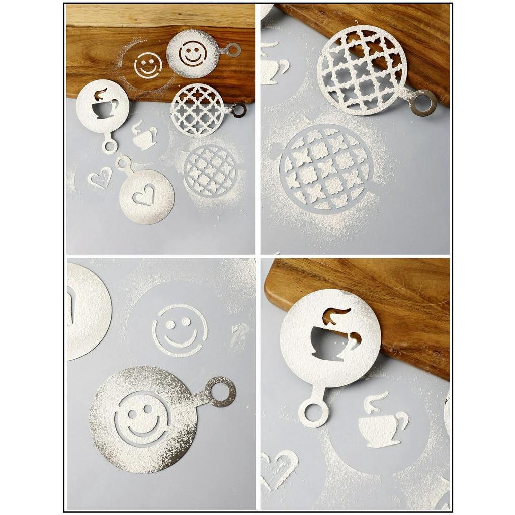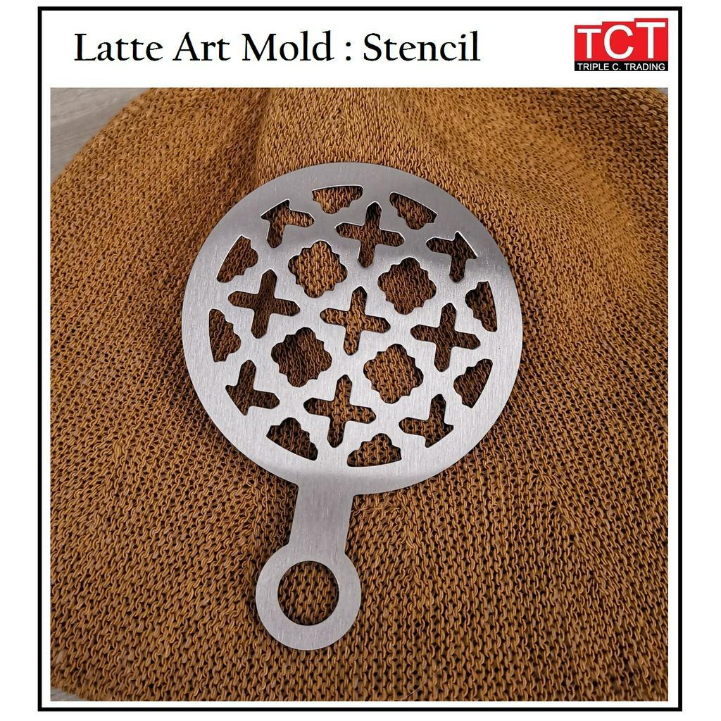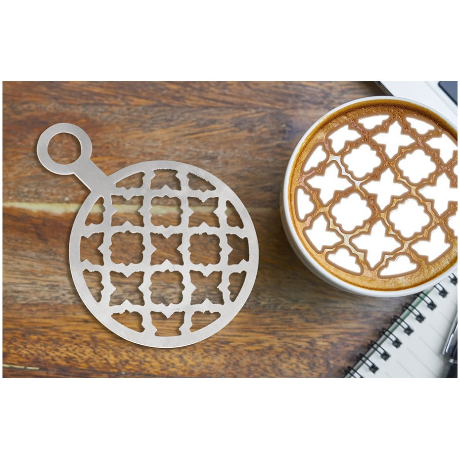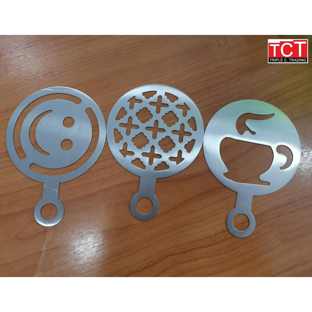 แม่พิมพ์โรยผงกาแฟ พิมพ์ลาเต้อาร์ตสแตนเลสอย่างดี มี 3 แบบให้เลือก Stainless Coffee Art Printing Model