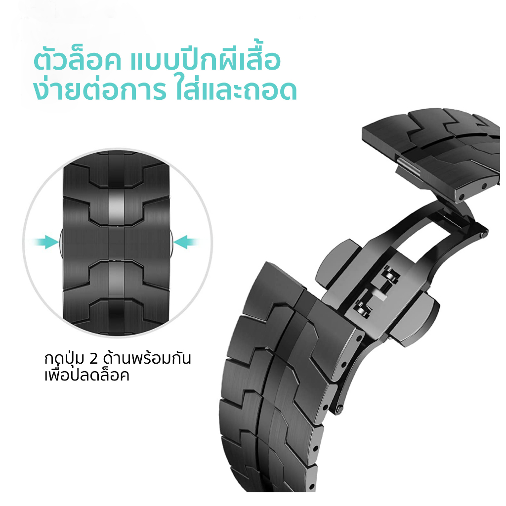 [ฟรีที่ปรับสาย] สายสแตนเลส ก้างปลา ล็อคปีกผีเสื้อ ใช้สำหรับ i Watch