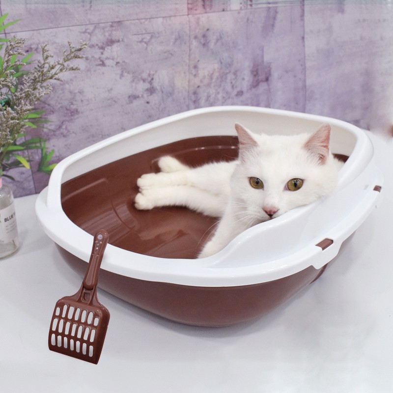 กระบะทรายแมวทรงรี ขอบสูงกันทรายกระเด็น