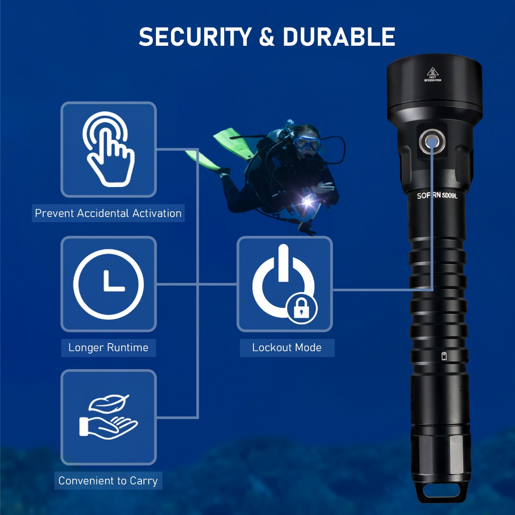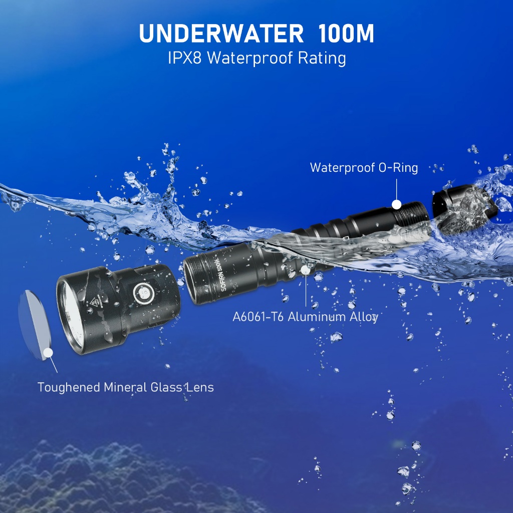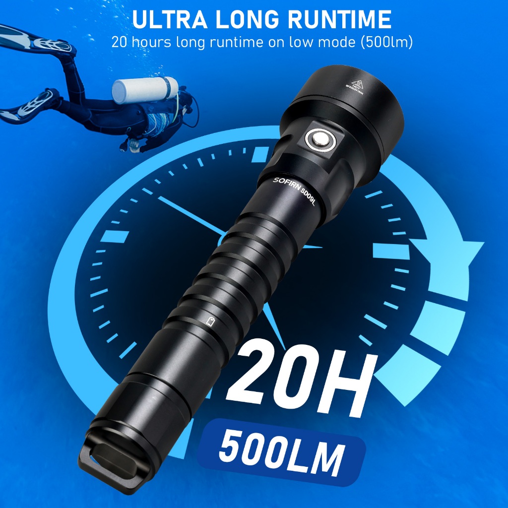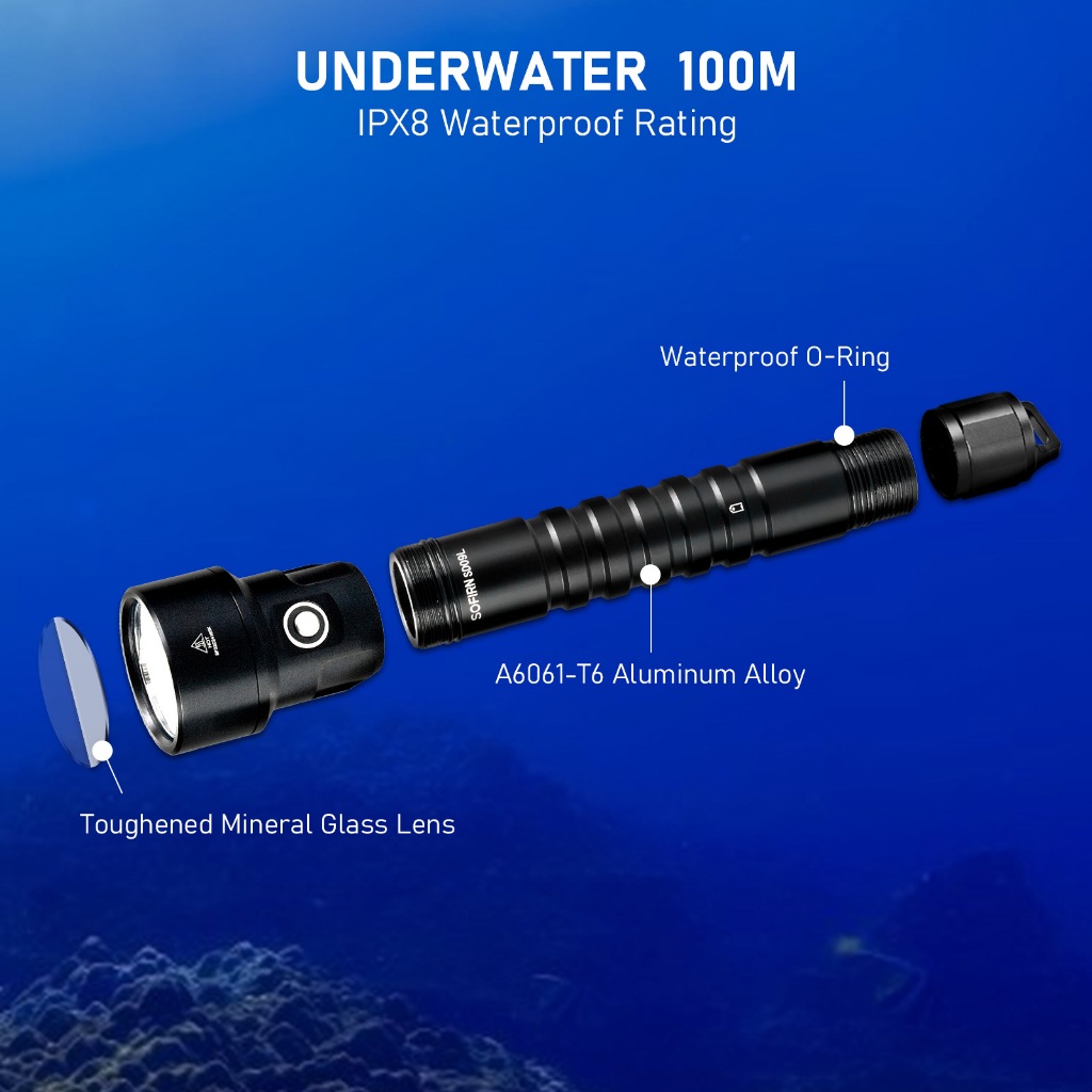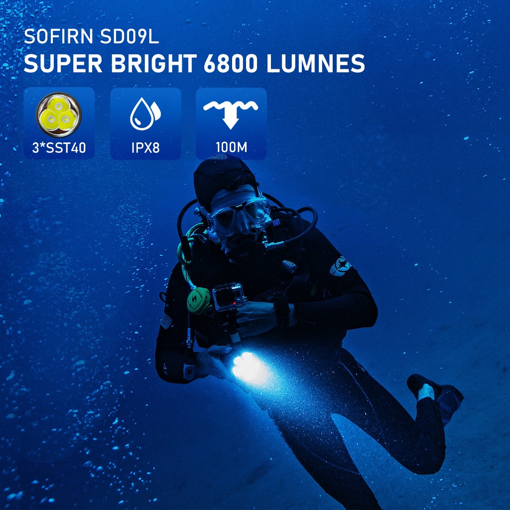 Sofirn SD09L ไฟฉายใต้น้ํา LED 6800 ลูเมน สว่างมาก กันน้ํา IPX8 ชาร์จไฟได้ สําหรับดําน้ํา