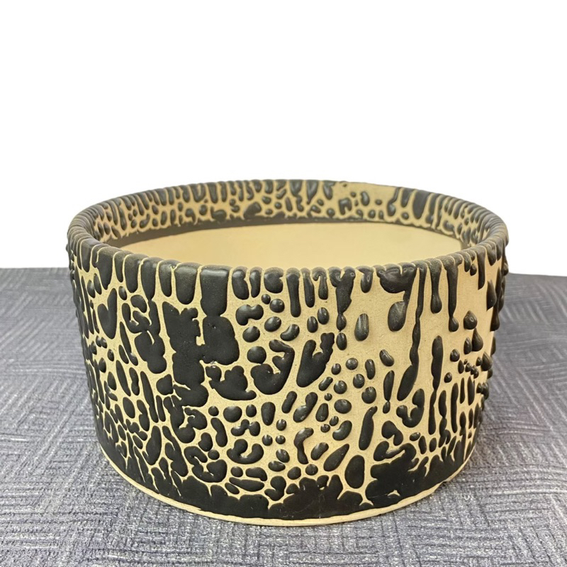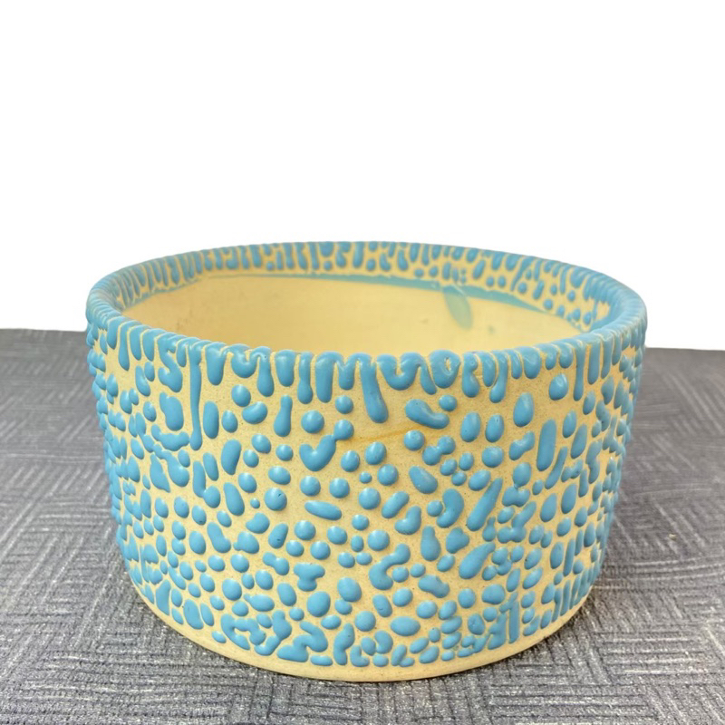 กระถางเซรามิคเซรามิค ทรงเตี้ยปิ่นโตกว้าง 6 นิ้ว เคลือบลาวาพาสเทล สูง 3 นิ้ว กระถางเซรามิก รูปทรง สีสัน และลวดลายสวยงาม คุณสมบัติคล้ายกับกระถางดินเผา คือ มีรูพรุน สามารถอุ้มน้ำและระบายอากาศได้ดีทำให้ไม่ต้องรดน้ำบ่อย แต่มีน้ำหนักมาก นิยมปลูกกับพันธุ์ไม้ใบปร