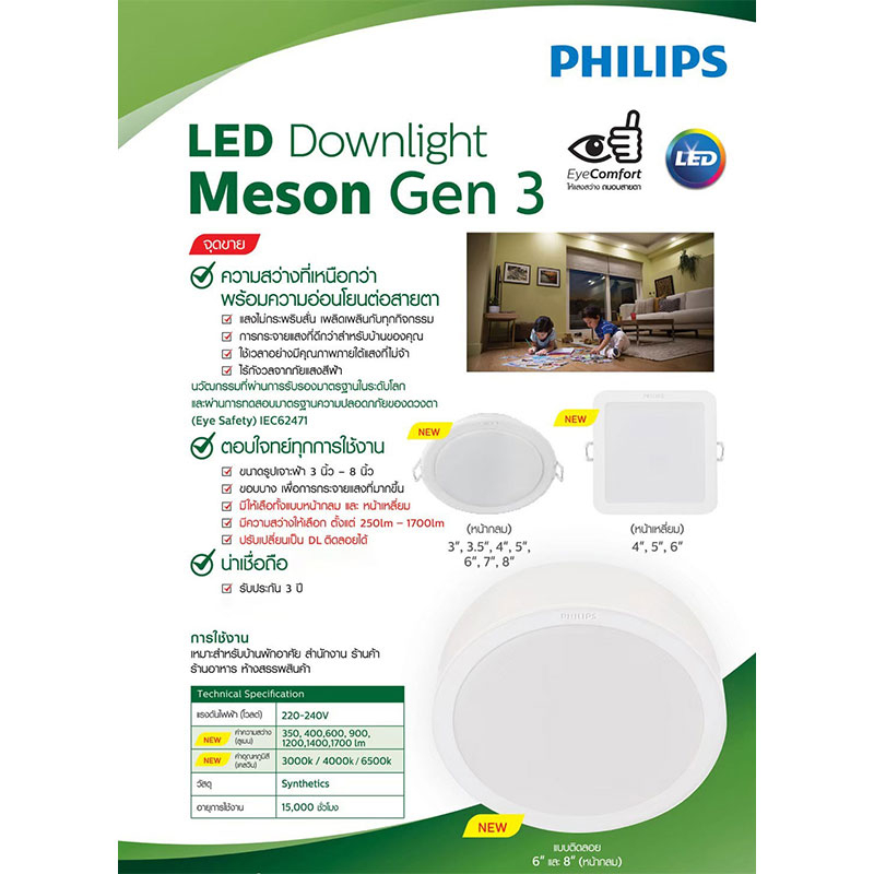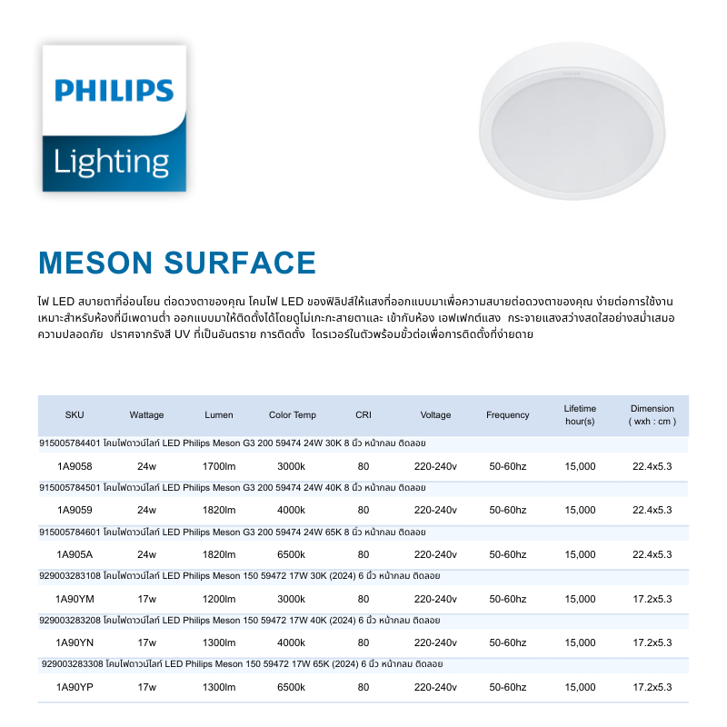 Philips LED Downlight 17W รุ่น MESON 150 59472 6 นิ้ว (6″) Surface ฟิลิปส์ ดาวไลท์ LED (ประกัน 1ปี)