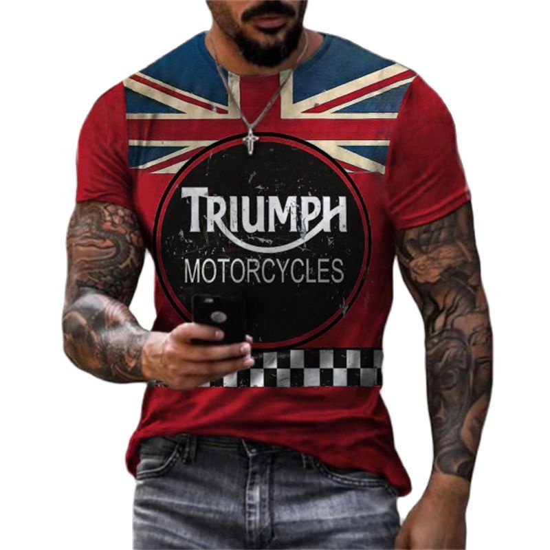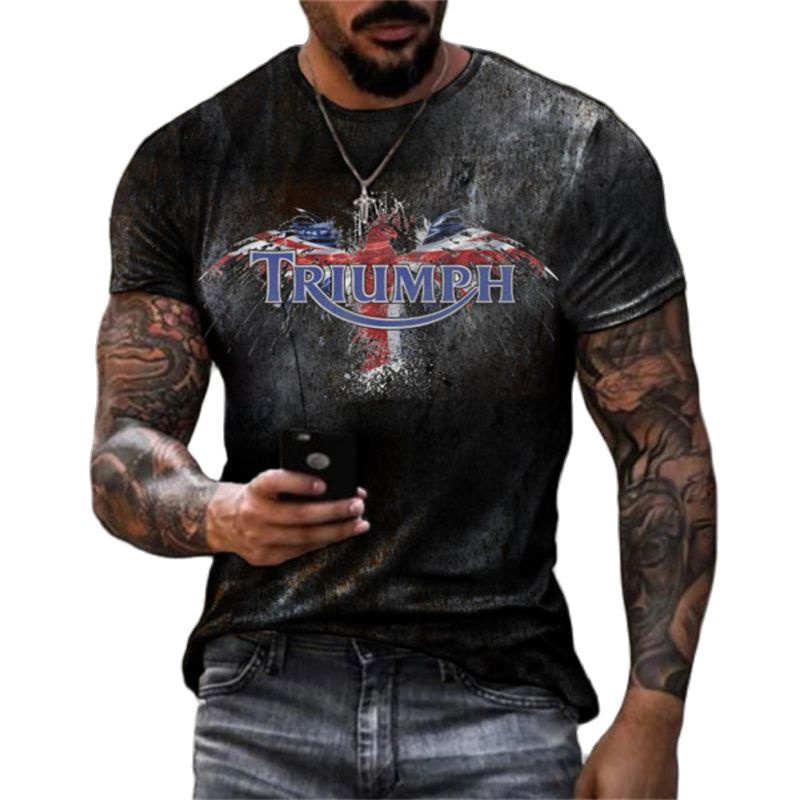 Triumph เสื้อยืดแขนสั้น คอกลม ผ้าโพลีเอสเตอร์ พิมพ์ลาย 3D ขนาดใหญ่ สไตล์เรโทร แฟชั่นฤดูร้อน สําหรับผู้ชาย 2023 สินค้าใหม่