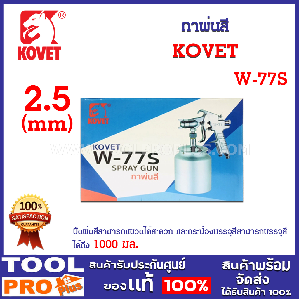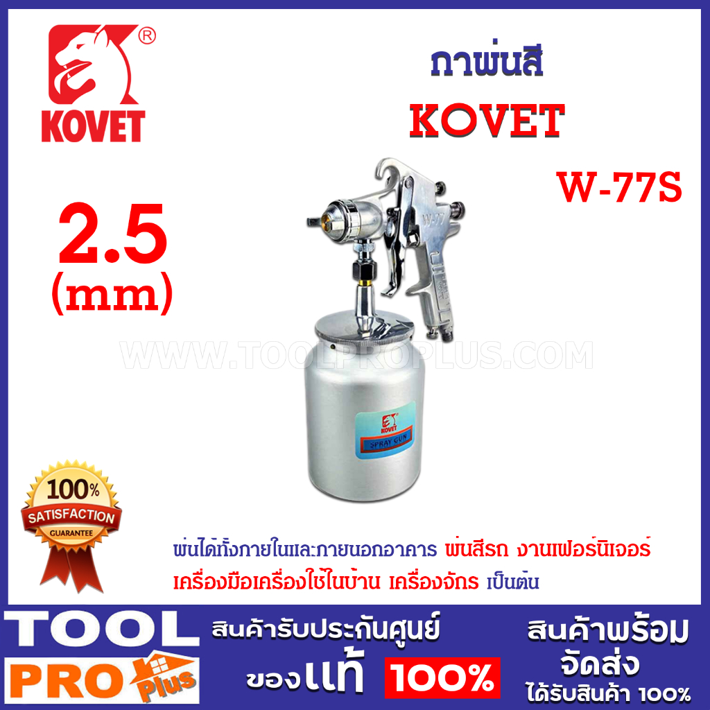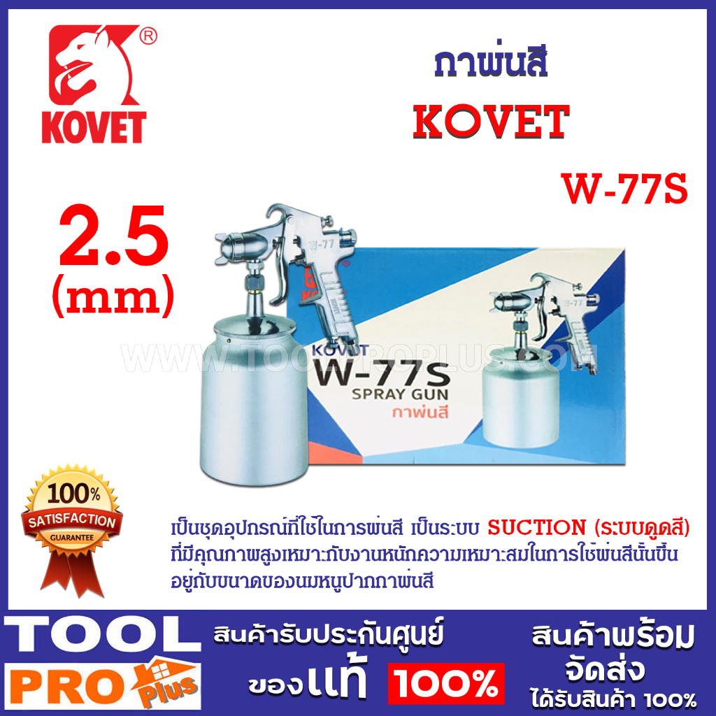 กาพ่นสี KOVET W-77S เป็นชุดอุปกรณ์ที่ใช้ในการพ่นสี เป็นระบบ SUCTION (ระบบดูดสี)