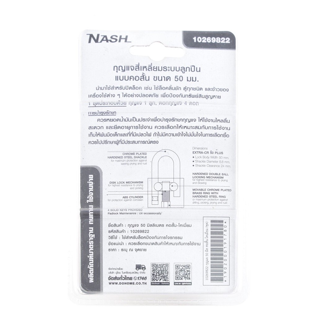 NASH กุญแจลูกปืน คอสั้น 50 มม. สีโครเมี่ยม |ZWF|