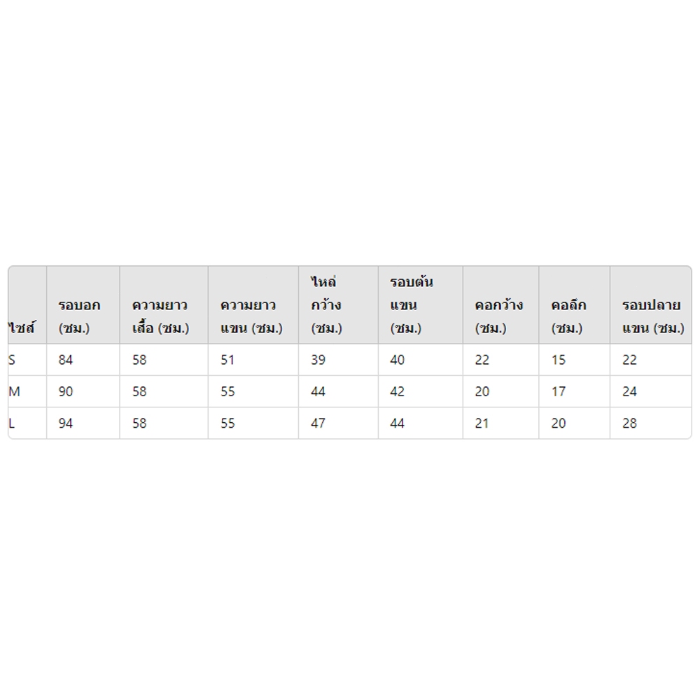 M: ความกว้างไหล่38 รอบอก92 รอบเอว92 ความยาวแขนเสื้อ58 ความยาวเสื้อผ้า63 น้ำหนักที่แนะนำ