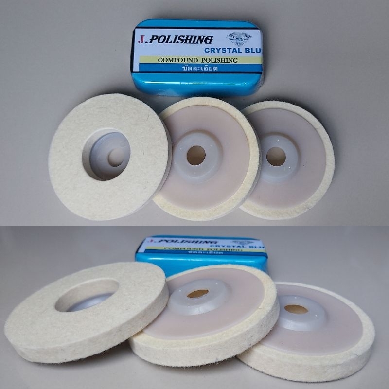 ชุดขัดเงาสแตนเลส เหล็ก ไทเทเนียม ไขปลาวาฬขัดละเอียดขนาด300กรัมพร้อมใบขัดเงานขนแกะขนาด4นิ้วหนา13mm.3ชิ้น