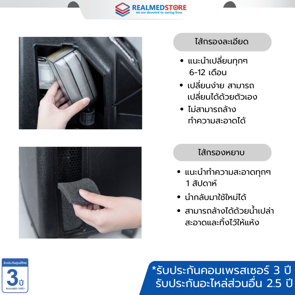 - เครื่องจะดูดซับเพื่อแยกไนโตรเจนออกจากอากาศที่เข้าสู่เครื่อง และปล่อยออกซิเจนกลับสู่ภาย