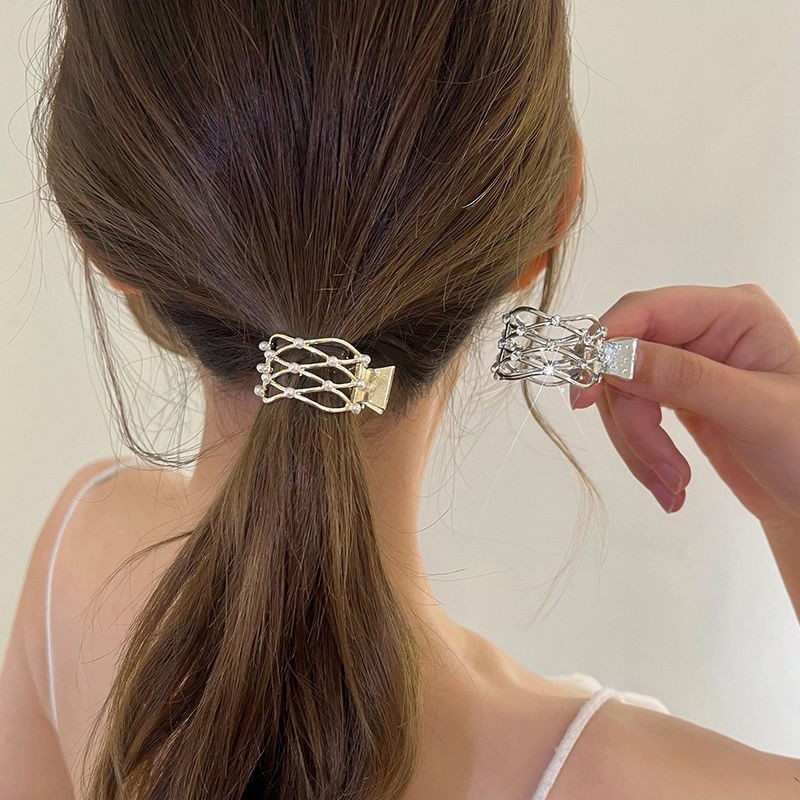 กิ๊บติดผมหางม้า ประดับไข่มุก พลอยเทียม เครื่องประดับ สําหรับผู้หญิง