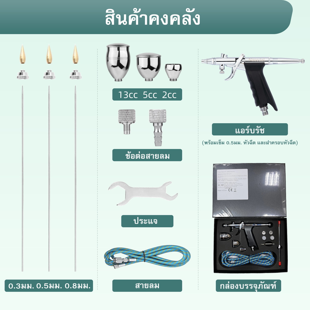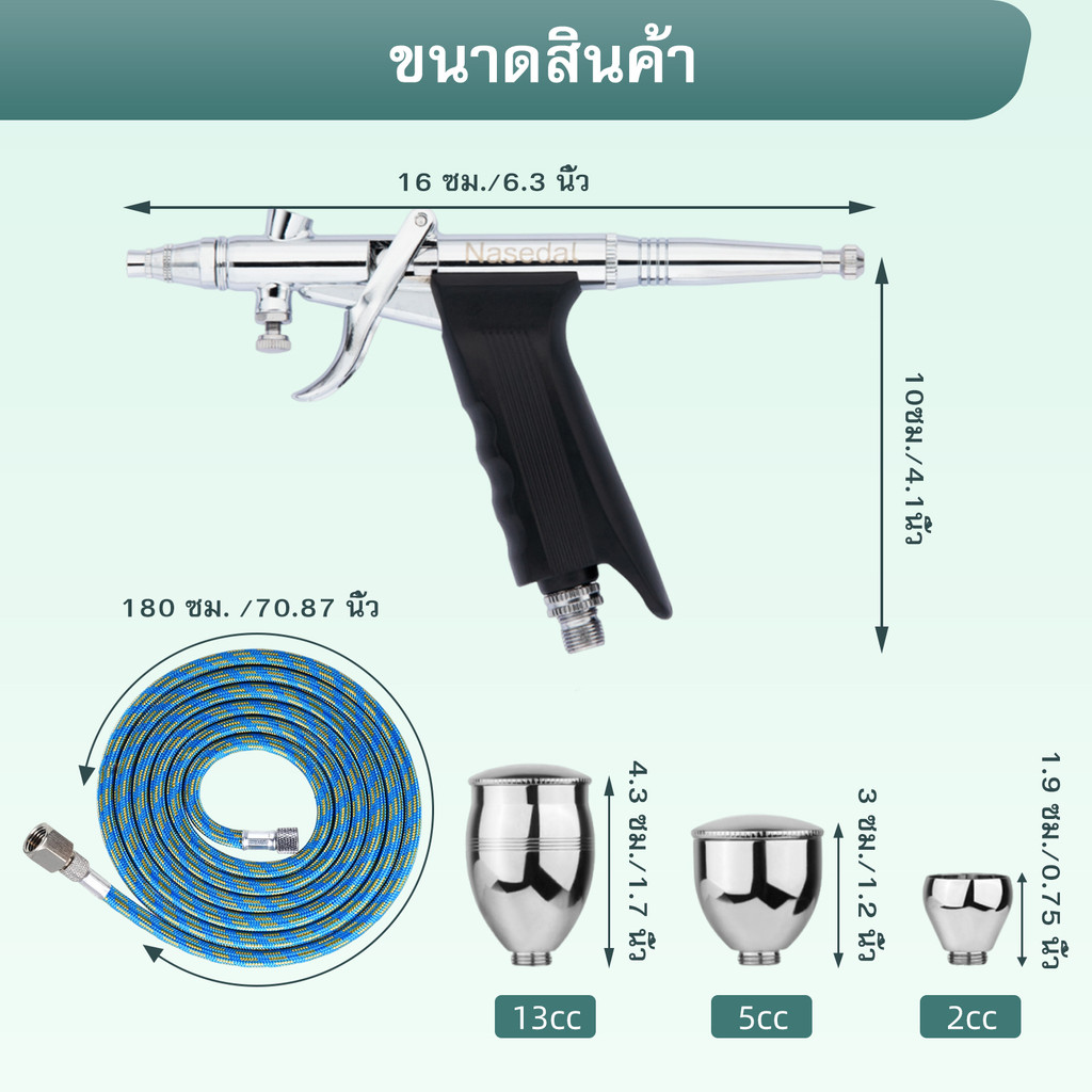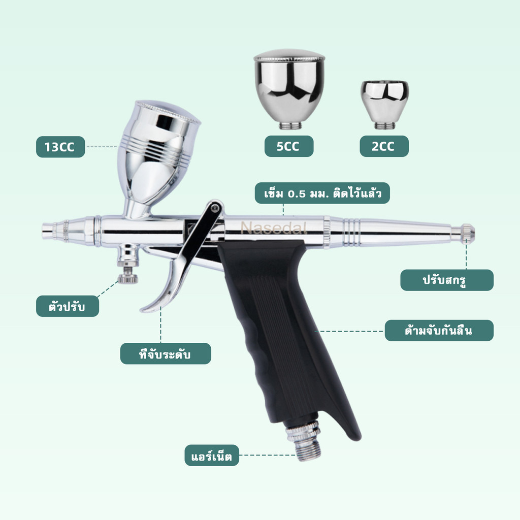 Nasedal 0.3/0.5/0.8mm Double Action Airbrush 2cc 5cc 13cc Gravity Feed Sprayer Air Brush kit Car Model Wall Painting Cake Decorating Tool
