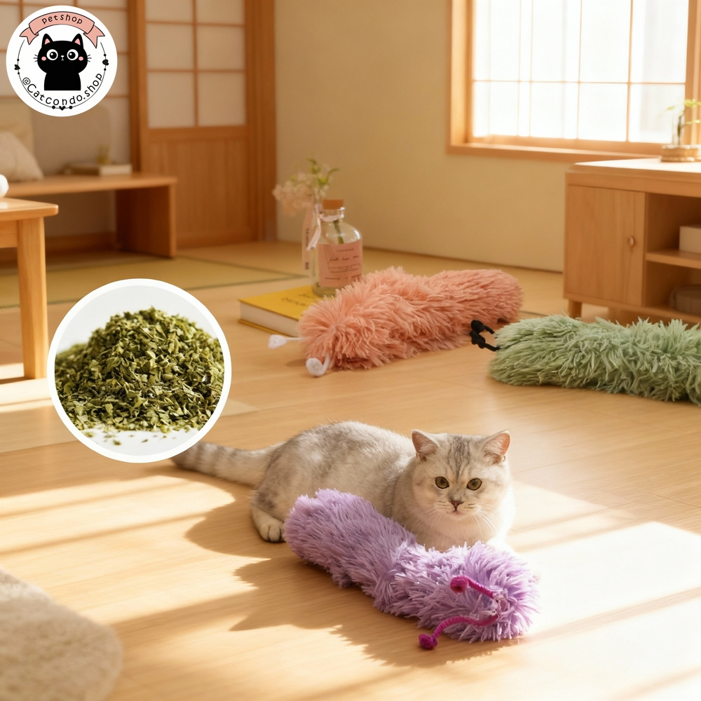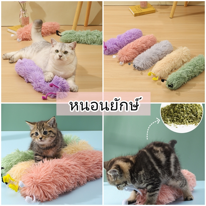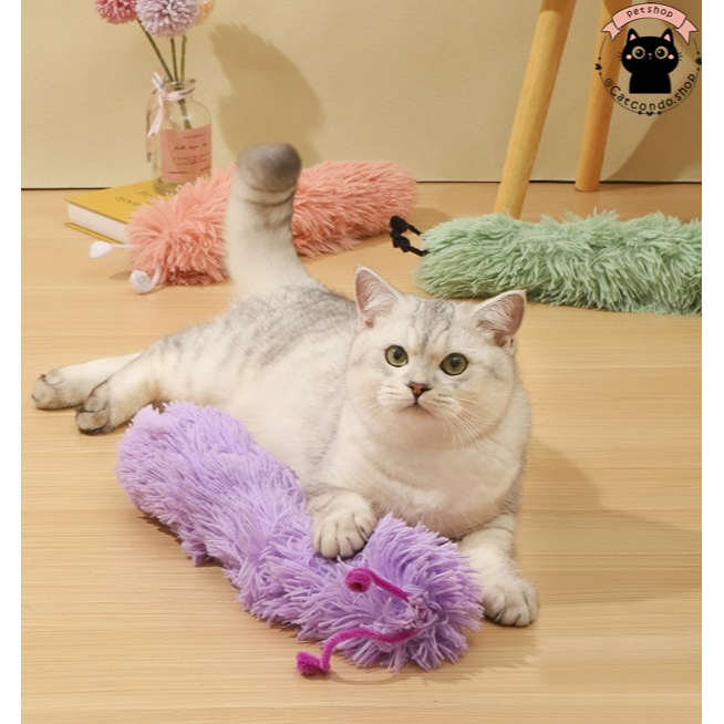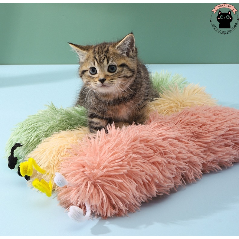 ✔ ตุ๊กตาหนอนสุดนุ่ม - ดีไซน์ขนฟู นุ่มนิ่มเหมาะสำหรับให้แมวขย้ำ กอด และเล่น