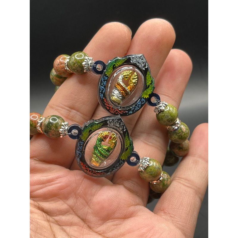 ข้อมือ กำไลหินยูนาไคต์ถูกหวยนาคราชเกี้ยวคู่งานเลเซอร์เลียมกันน้ำ100%