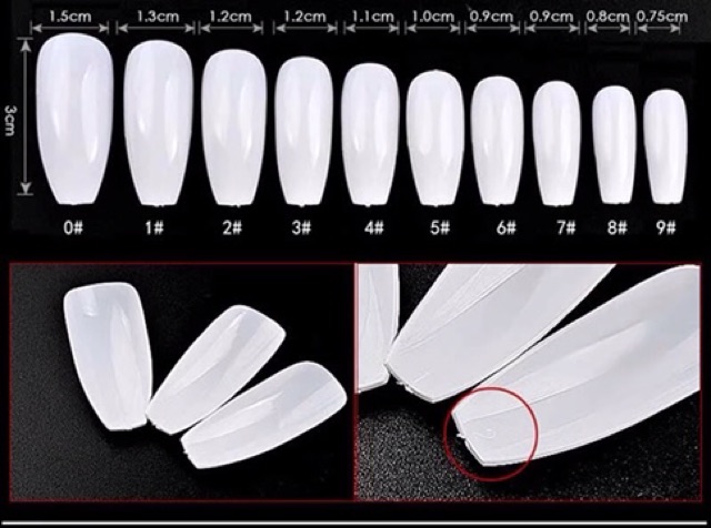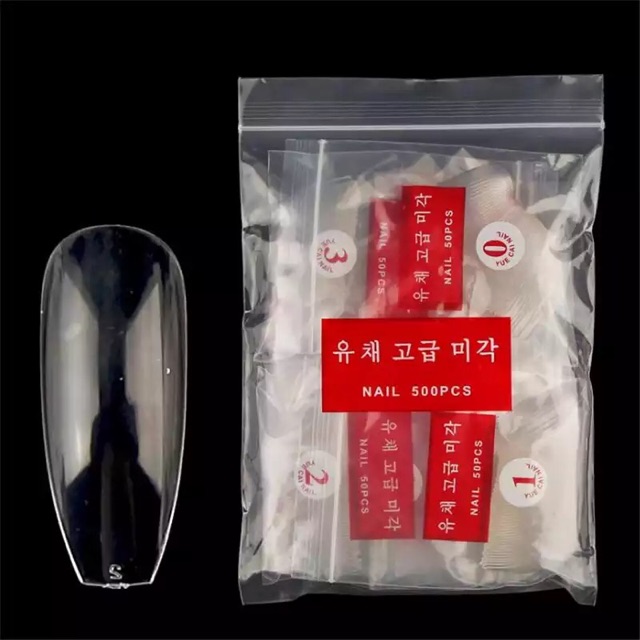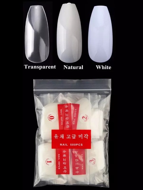 เล็บ PVC ทรงคอฟฟินยาว ห่อ 500ชิ้น สีขุ่น สีใส สีขาว