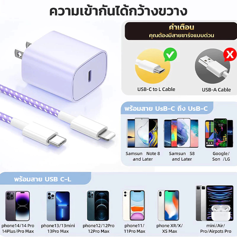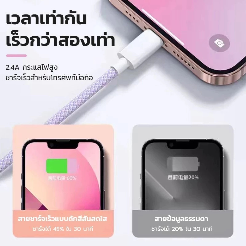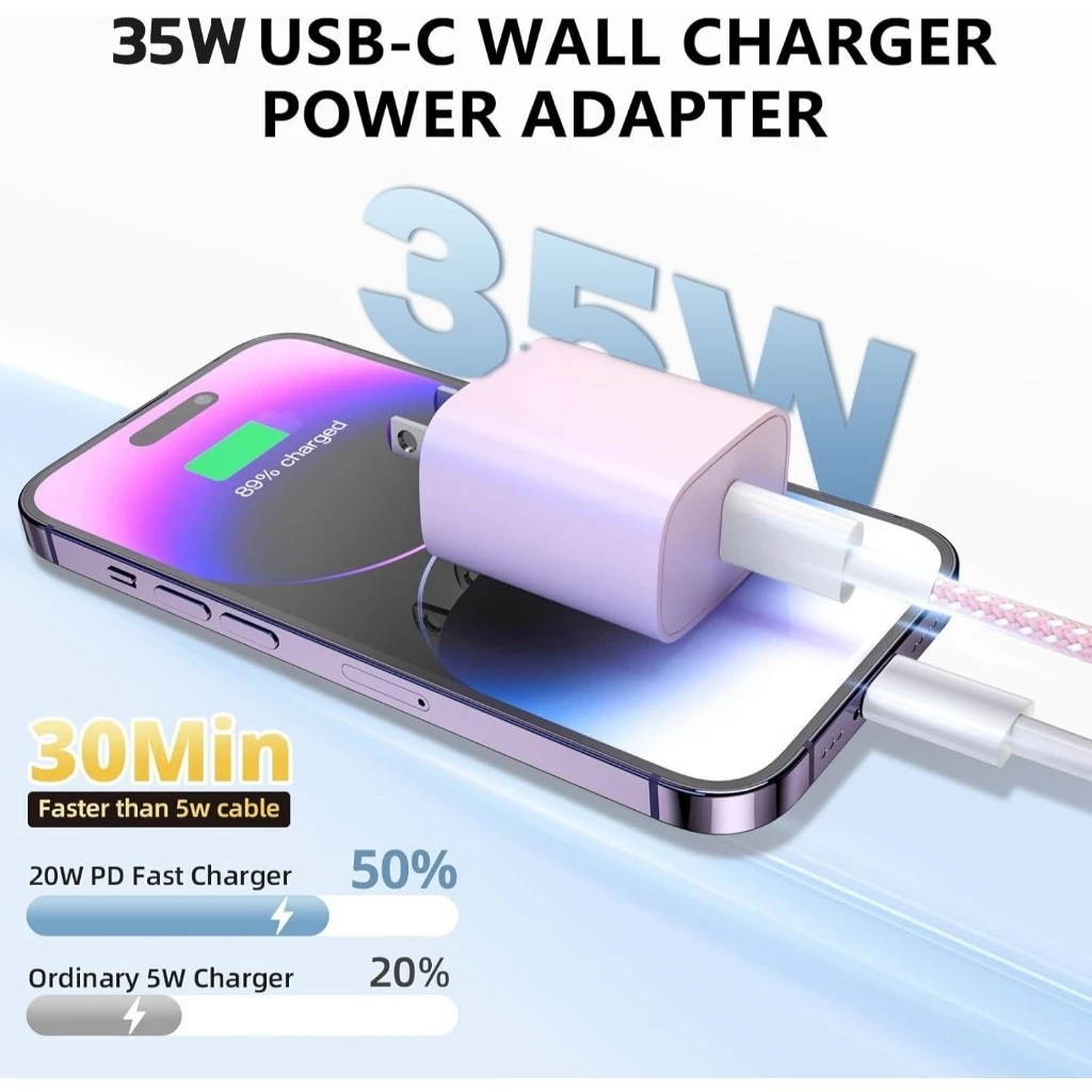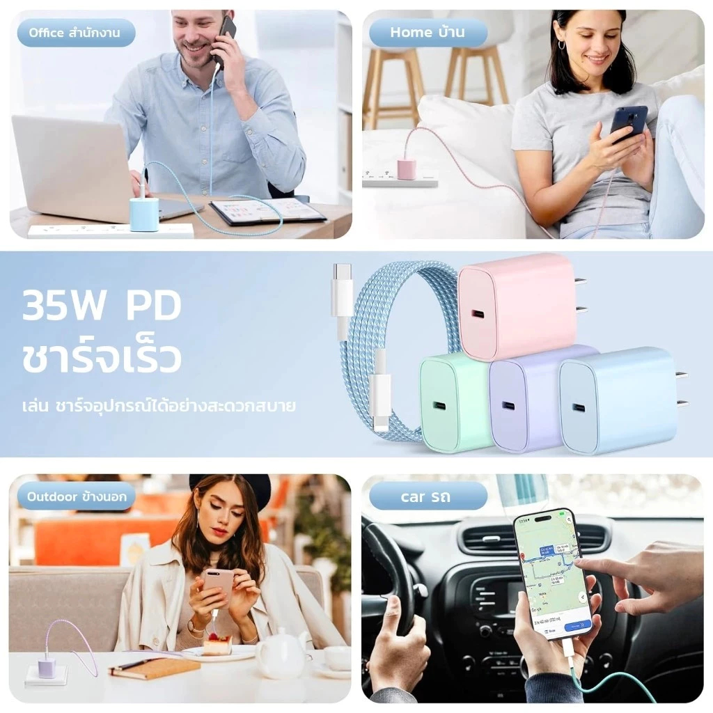 ชาร์จไว PD 35W สายชาร์จ สีพาสเทล สายชาต หัวชาร์จ pastel Fast Charge (สำหรับ ไอ5~14pro max / ไอpad) การรับประกัน 1 ปี