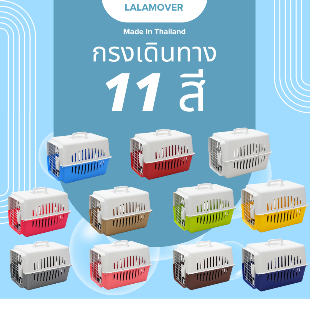 Lalamover กรงหิ้วหมา กรงหิ้วแมว(หูหิ้วสีเดียวกับกรง)(แถม ชามอาหาร ชามเกี่ยวกรง แผ่นปูพื้น )