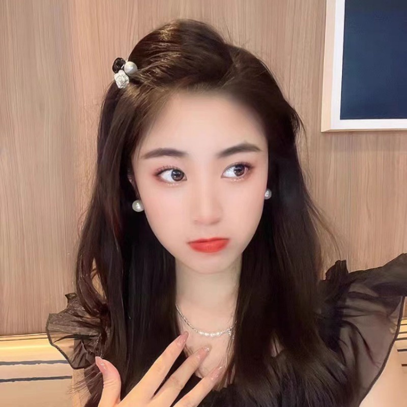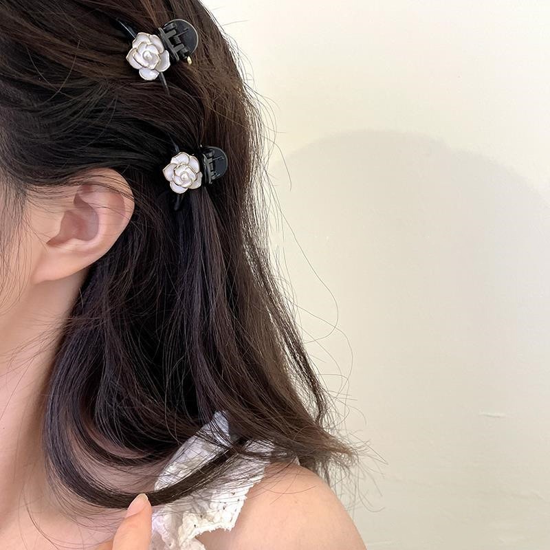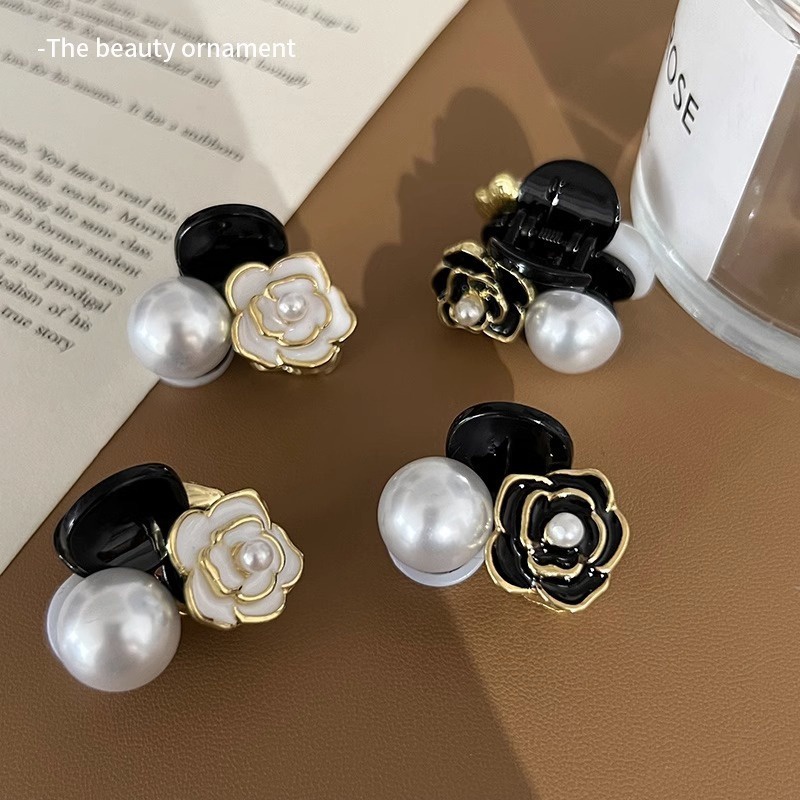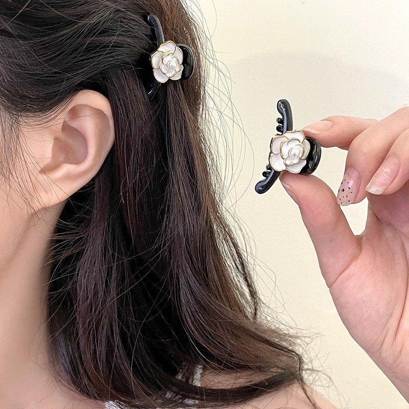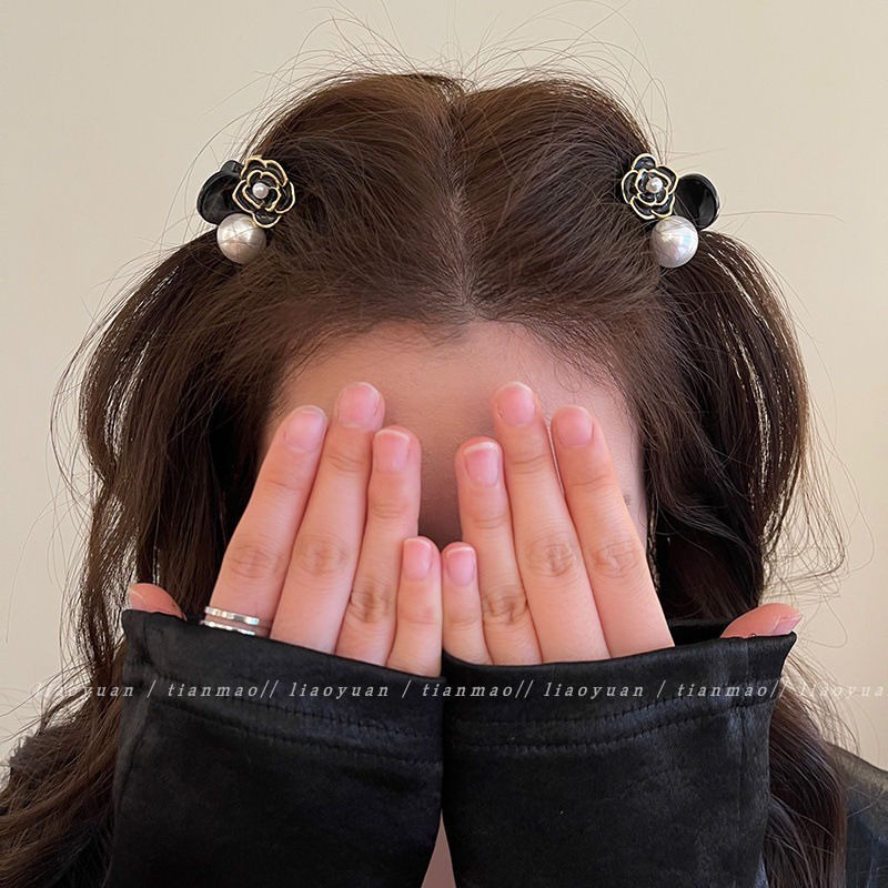 Jojo COCO กิ๊บติดผม รูปดอกคามิเลีย ประดับไข่มุก ขนาดเล็ก สีดํา สไตล์วินเทจ