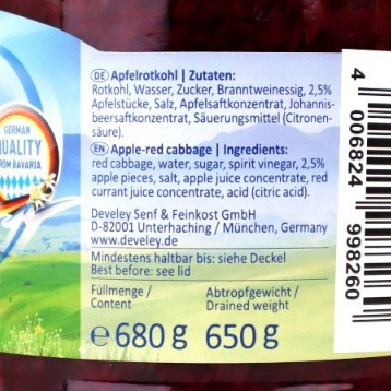 ดิวีเลย์ กะหล่ำปลีแดงดอง แบบบาวาเรียน 680 กรัม – Red Cabbage Bavarian 680g Develey brand