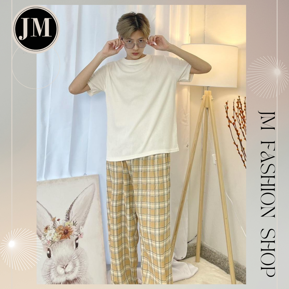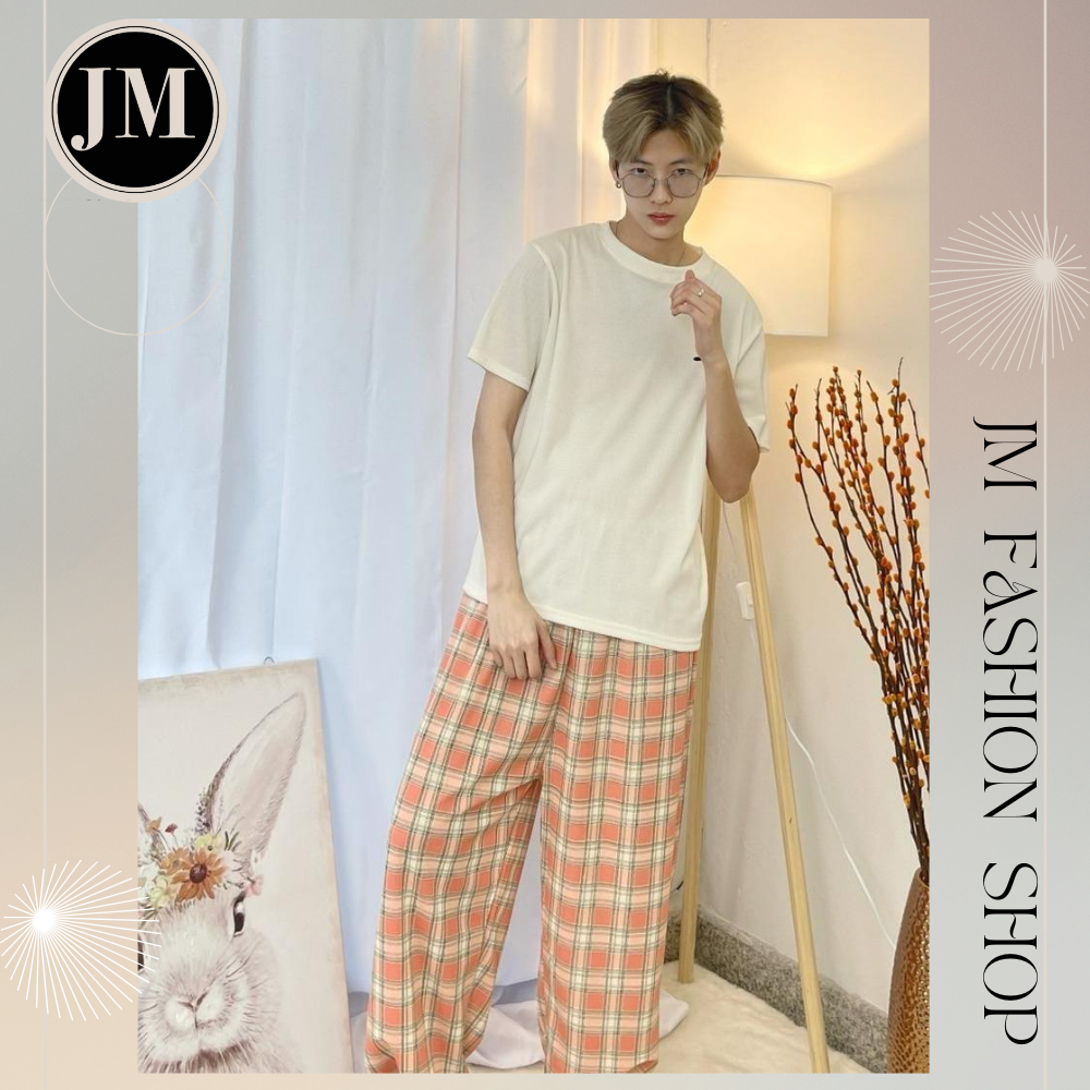 JM Fashion Shop เนื้อผ้า cotton ผ้านิ่มเด้งๆ ทิ้งตัวใส่สวย กางเกงขายาว ตัวผ้านิ่มใส่สบาย กางเกงลายสก็อต เอวยืดเยอะ K040
