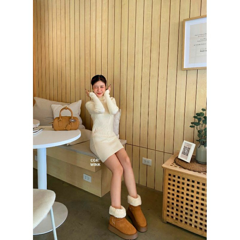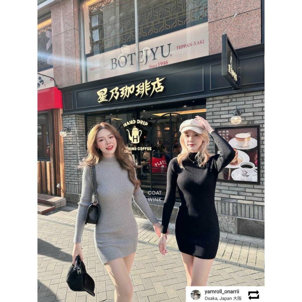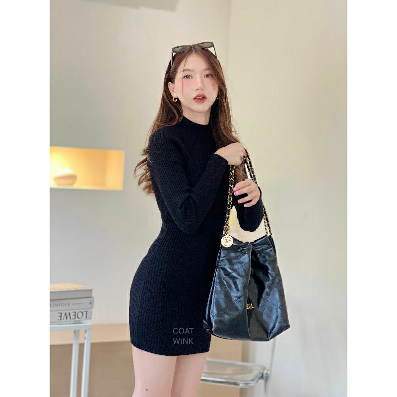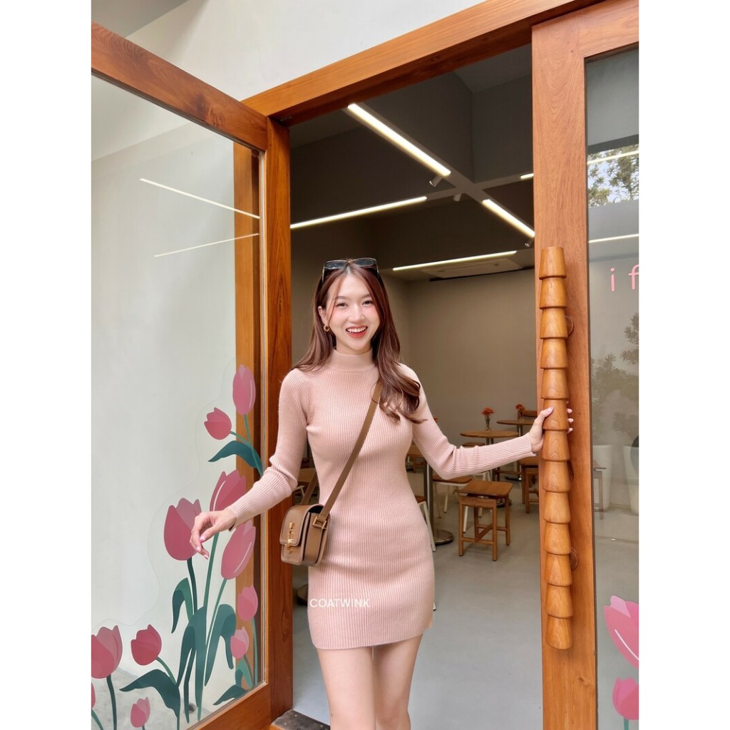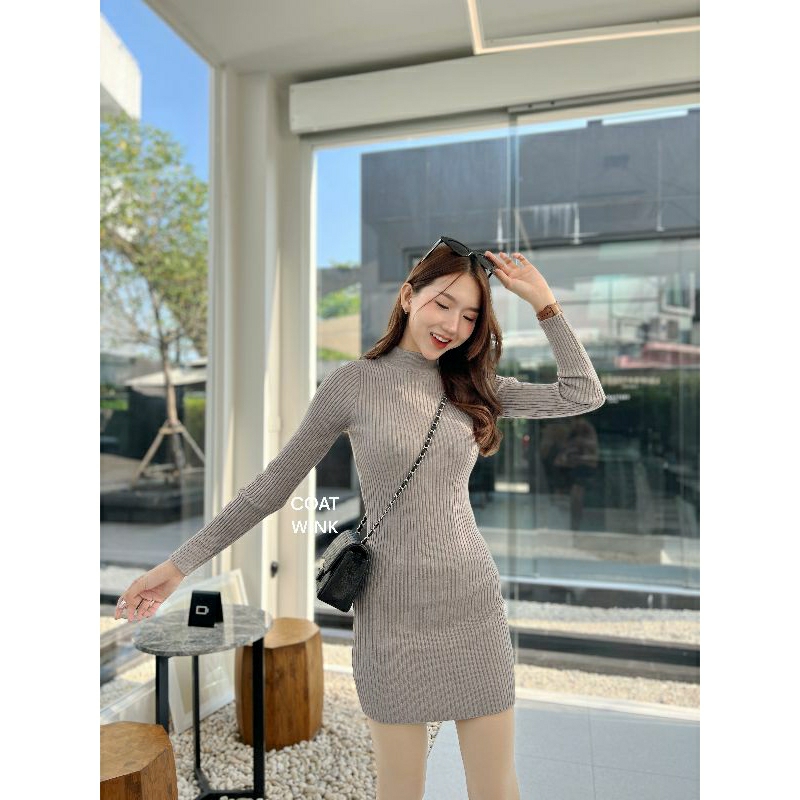 ?ใส่สบายมาก?COATWINK~เดรสไหมพรม คอปีน ทรงสลิม ผ้านิ่ม