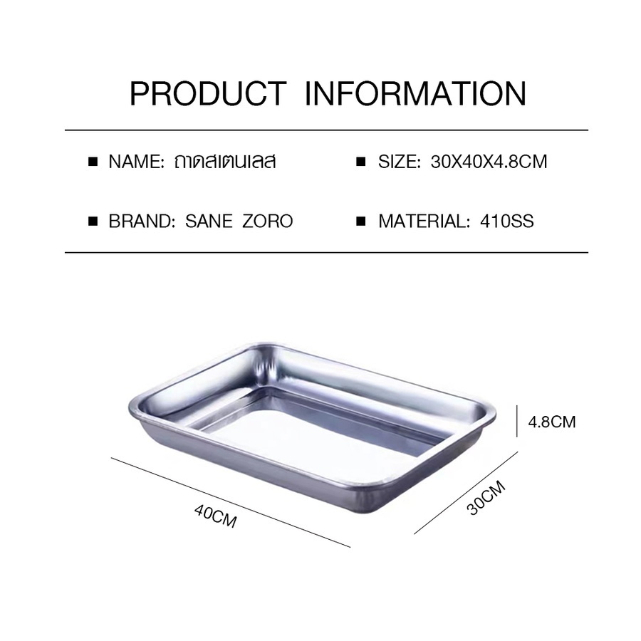 SANE ถาดสเตนเลส 30x40x4.8ซม. ZOROสินค้าผลิตจากสเตนเลสหนา คุณภาพดีขนาดสินค้า 30x40x4.8 ซม. ลึกกำลังดี มีความเงางามใช้งานได้หลากหลาย ยาวนาน คงทน