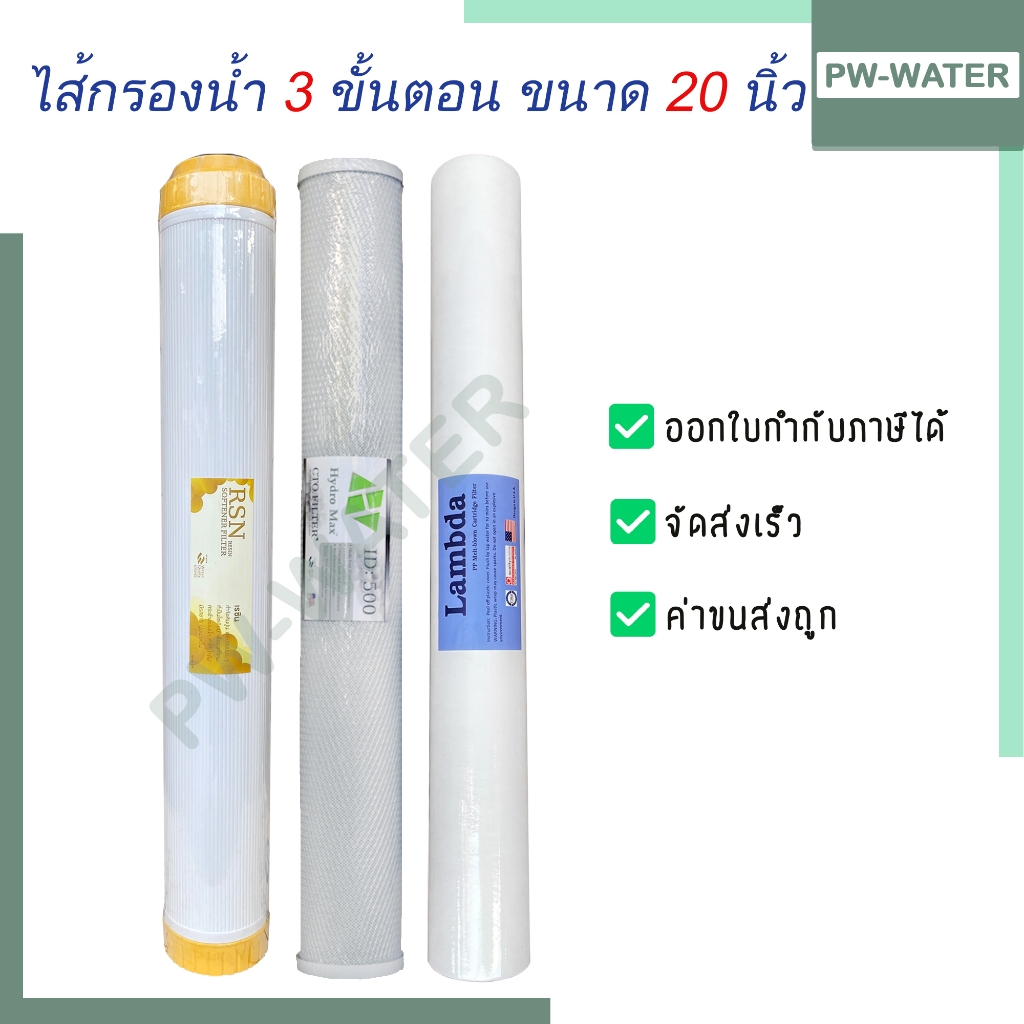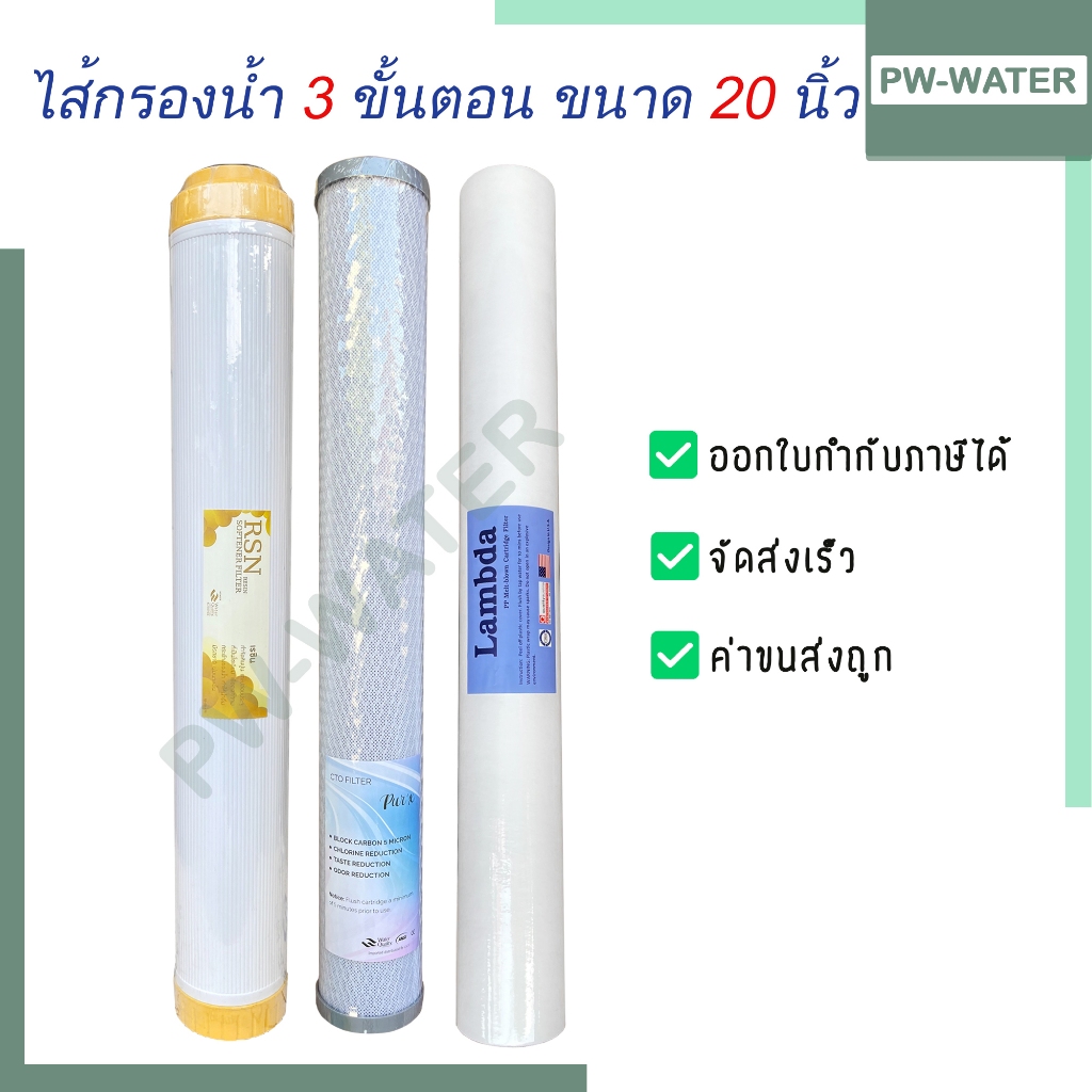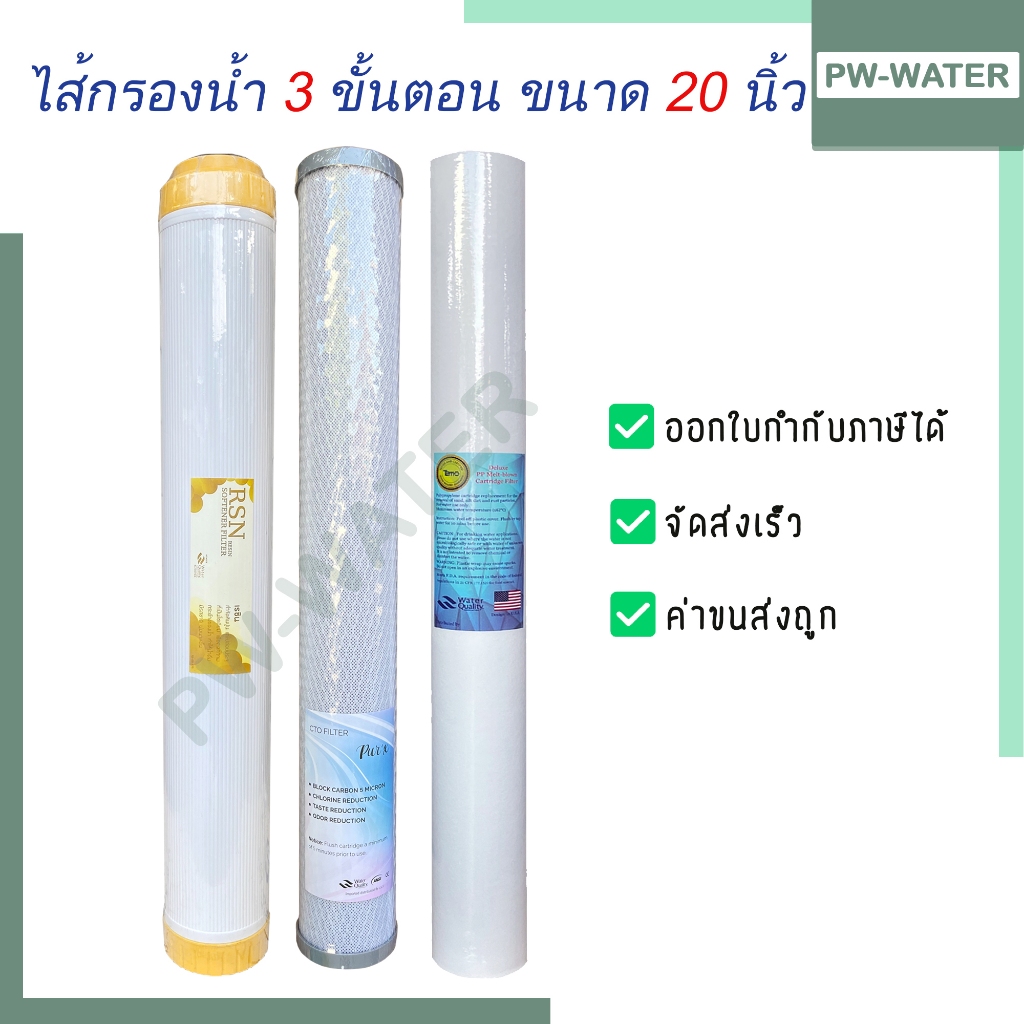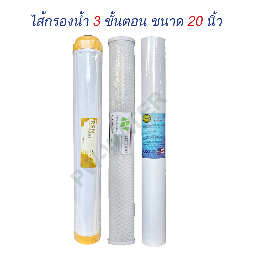 ไส้กรองน้ำดื่ม 3 ขั้นตอน PP+CTO+Resin ขนาด 20นิ้วx2.5นิ้ว (ใช้ได้กับตู้กดน้ำหยอดเหรียญ) ชุดไส้กรองเครื่องกรองน้ำ20นิ้ว