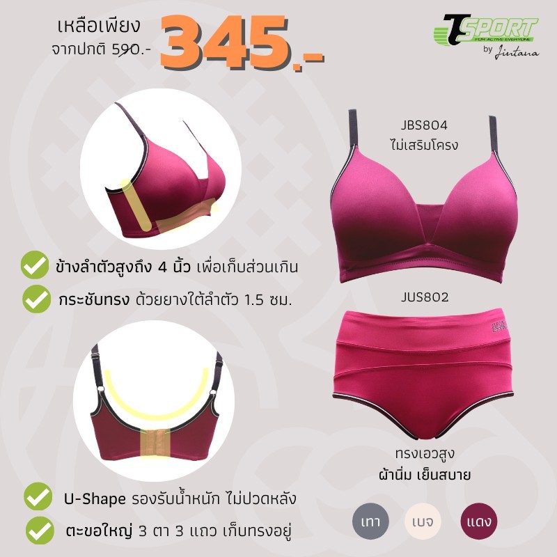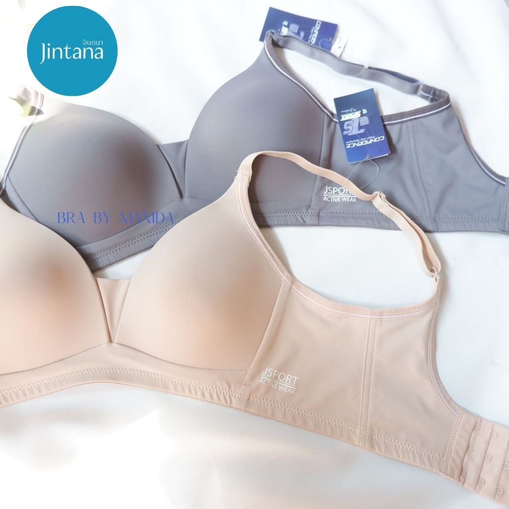 Jintana Sport Bra (ไม่เสริมโครง) รหัส JBS804 ฟองน้ำบาง ตะขอหลังปีกข้างสูง ซับผ้า 2 ชั้น ช่วยเก็บเนื้อด้านข้าง