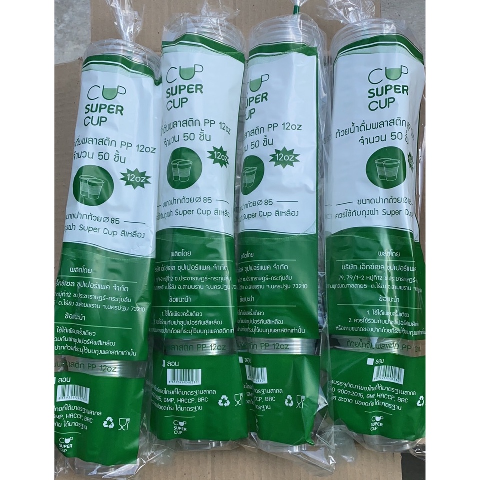 แก้ว 12 ออนซ์ ปาก 85 ลอนใส ตรา SUPERCUP (1000ใบ) ยกลัง